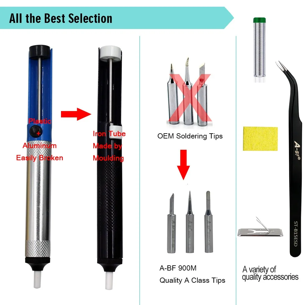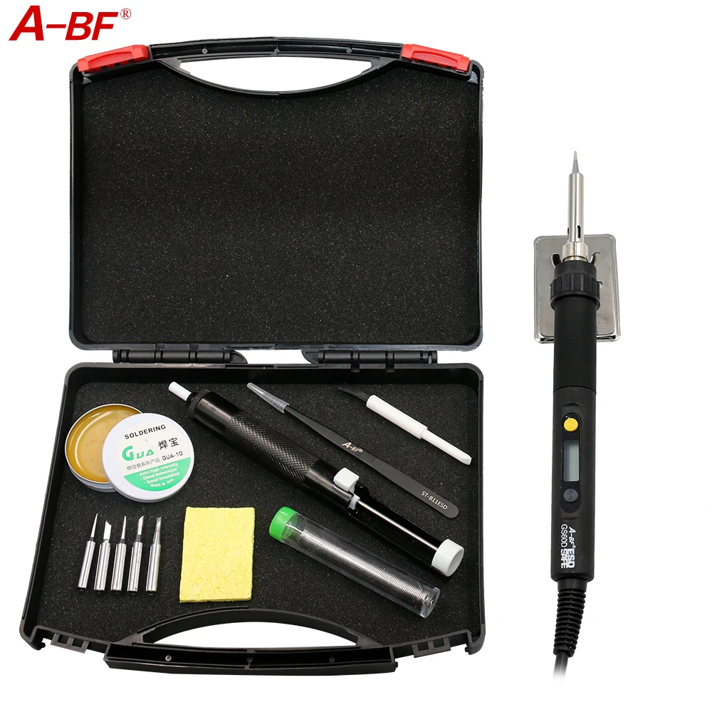 A-BF GS60D 60 Вт 220 В с регулируемой температурой цифровой ЖК-дисплей 10 в 1 комплект паяльника с наконечниками для пайки, припоя, насос для распайкиUS $29,80/Шт.