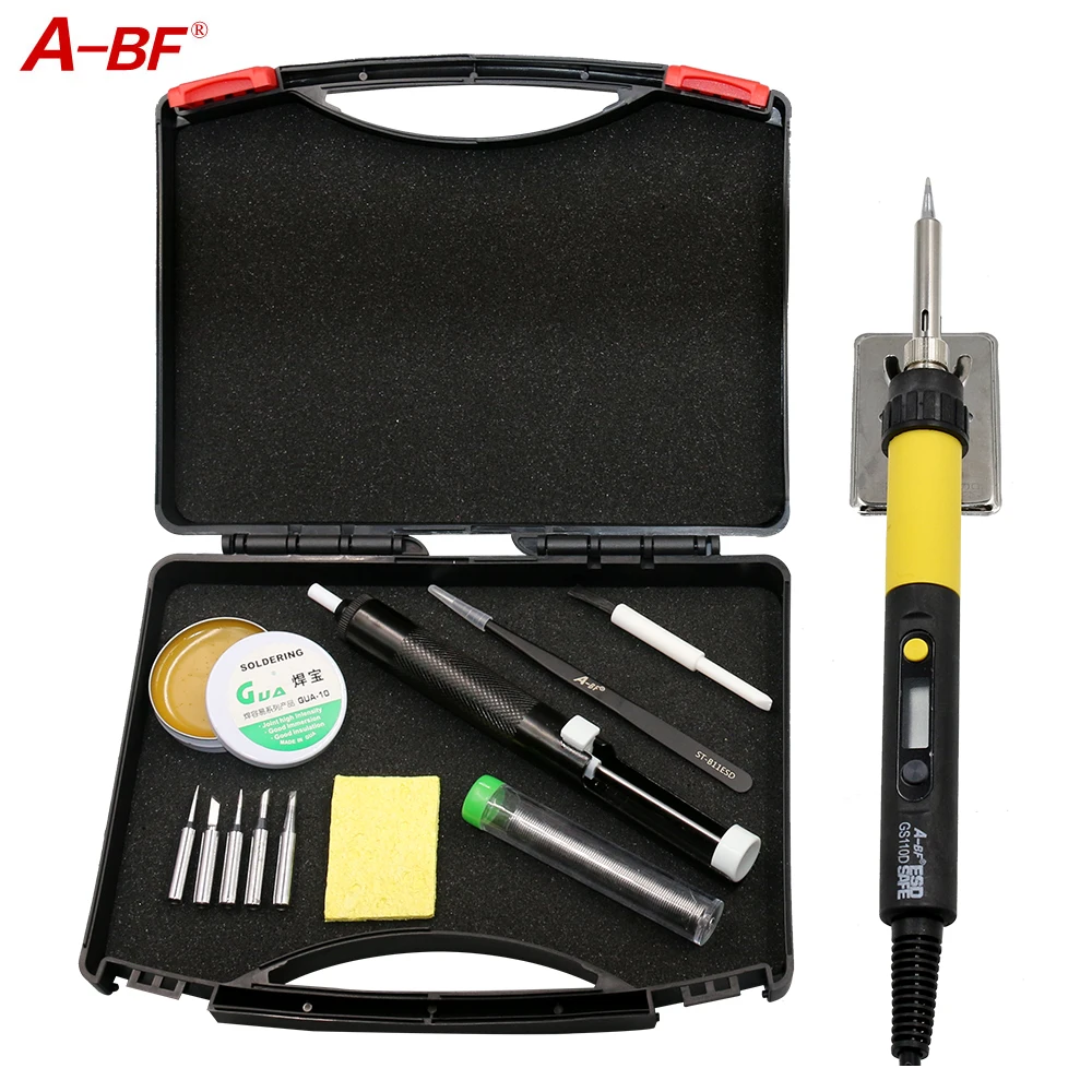 A-BF GS110D 110 Вт 220 В с регулируемой температурой цифровой ЖК-дисплей 10 в 1 комплект паяльника, 10 г припоя, 3 наконечника для пайки, насос для распайкиUS $37,80/Шт.