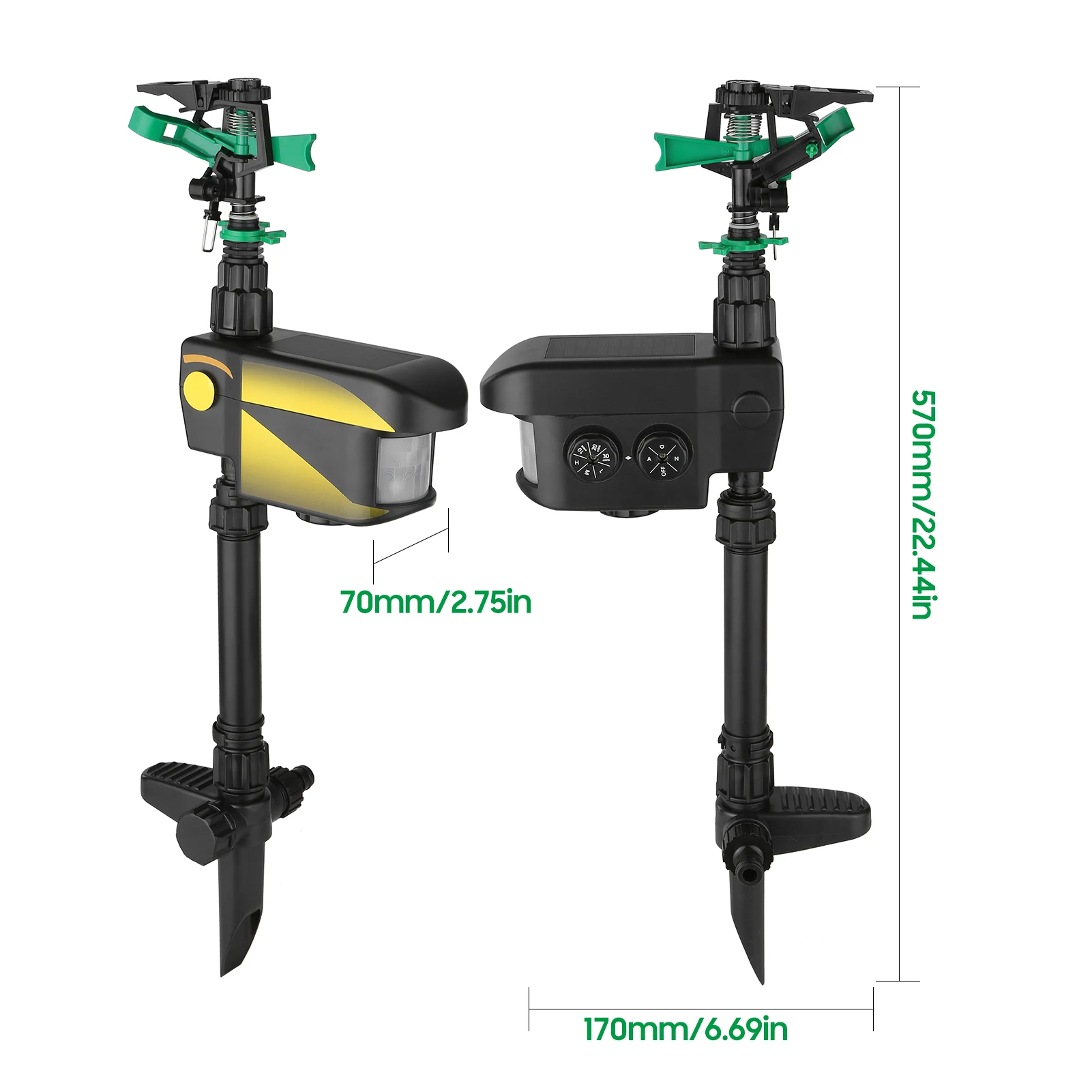Эффективность и отсутствие вреда:Солнечный разбрызгиватель, активированный движением, для вождения животных с безвредным, безопасным распылением воды, эффективно защищает ваши фермы, сады, сады, лужайки, передние дворы и т. Д.
