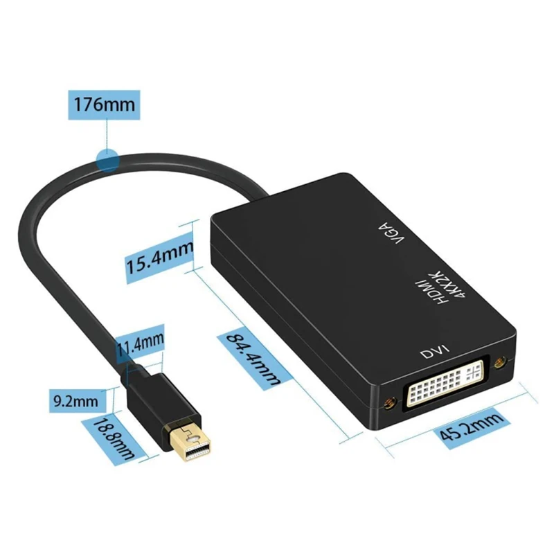 Поддерживает разрешение 4K: адаптер mini displayport to hdmi vga dvi поддерживает разрешение до 3840*2160(HDMI); Поддерживает разрешение до 1920*1200 (VGA и DVI), безупречная передача звука для несжатых цифровых каналов 7,1, 5,1 или 2 (без аудиовыхода через DVI или VGA). Не совместим с thunderbolt 3,0 или любым дисплеем USB C.
