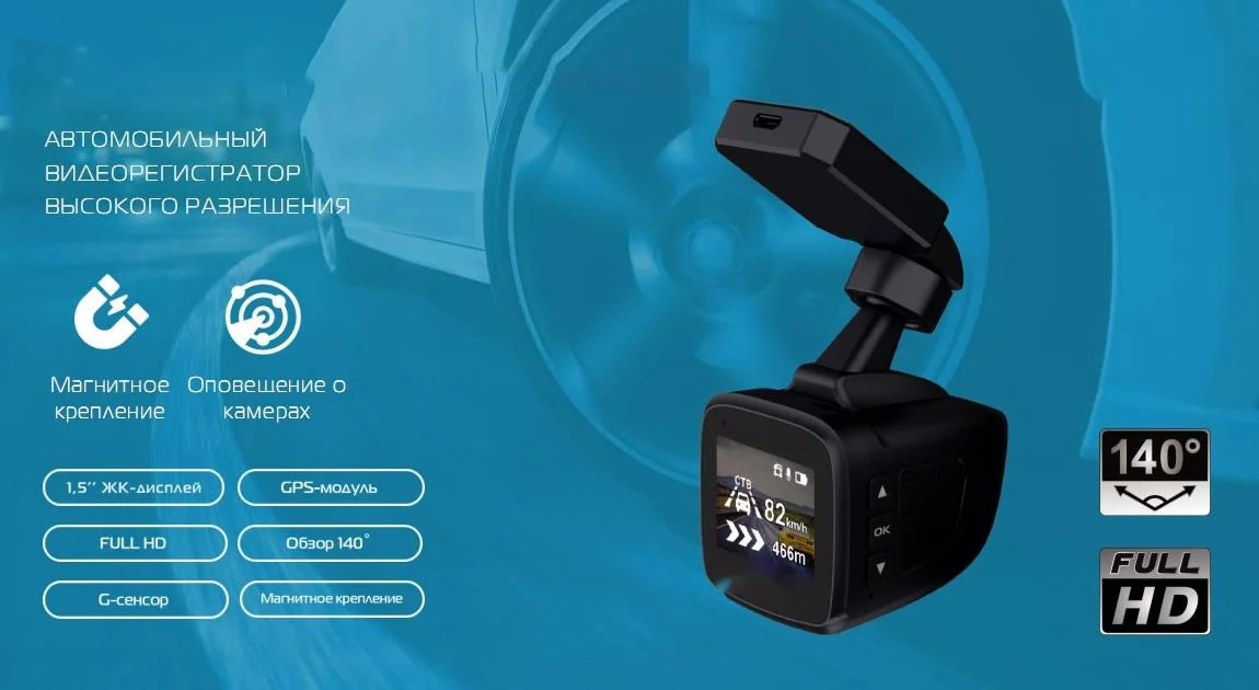 Гаджет не только записывает детальное видео в разрешении full HD, но и предупреждает водителя о приближении полицейских радаров и камер благодаря работе модуля GPS