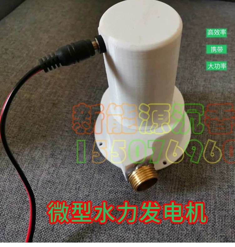 Микрогидроэлектрический генератор удобен в переноске и может заряжать мобильные телефоны и другие электронные продукты. Выработка энергии зависит от давления источника воды. Чем выше давление воды, тем больше мощность. Интерфейс представляет собой 4-точечный интерфейс, его также можно превратить в 6-точечную или 1-дюймовую трубку. Чем больше поток, тем больше выходная мощность напора воды. Она используется для выработку электроэнергии из водопроводной воды, небольших ручьев и небольших рек в дикой природе и других мест с источниками воды.