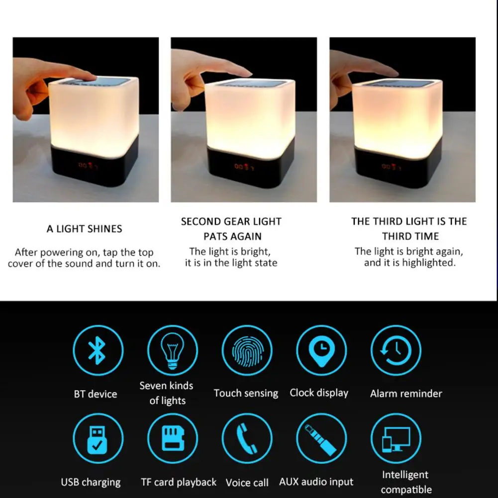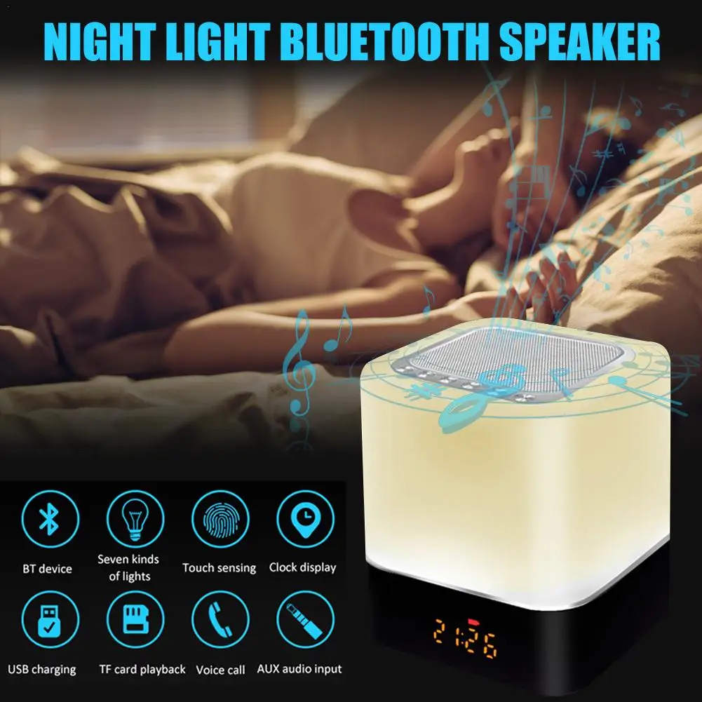 Портативный беспроводной Bluetooth-совместимый динамик, мини-динамик, светильник, цветной светодиодный Ночной светильник, прикроватная настольная лампа для лучшего сна