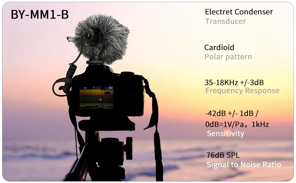 BY-MM1-B поставляется в компактном размере и облегченном алюминиевом корпусе, это не будет тяжелой нагрузкой во время съемки. Подключи и играй дизайн, не нужно беспокоиться о состоянии батареи. В комплект входит Анти-ударное крепление, которое может эффективно уменьшить нежелательные вибрации, кабель и шум в обращении. Также включает пушистый ветрозащитный щит, который специально используется для минимизации ветра и шума окружающей среды для наружной записи, убедитесь, что звук кристально чистый.