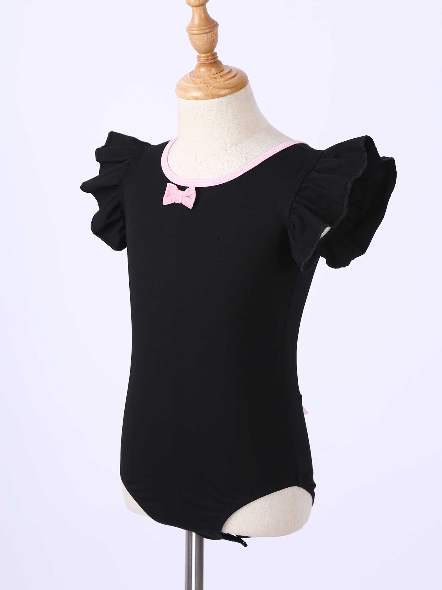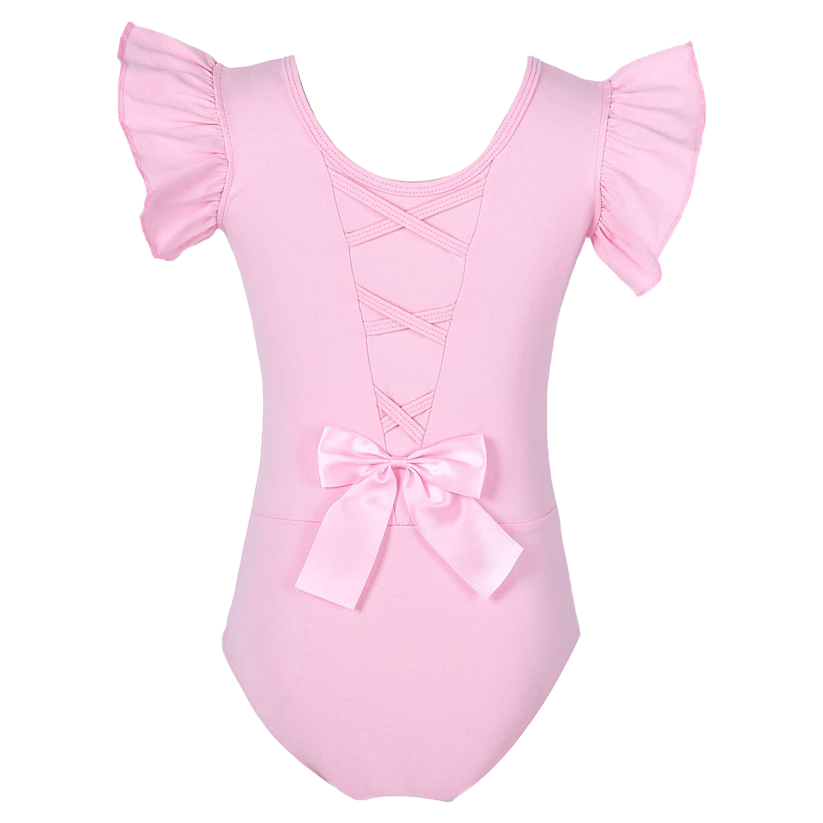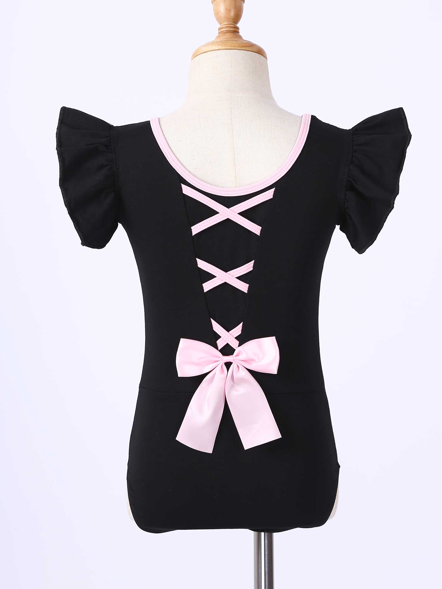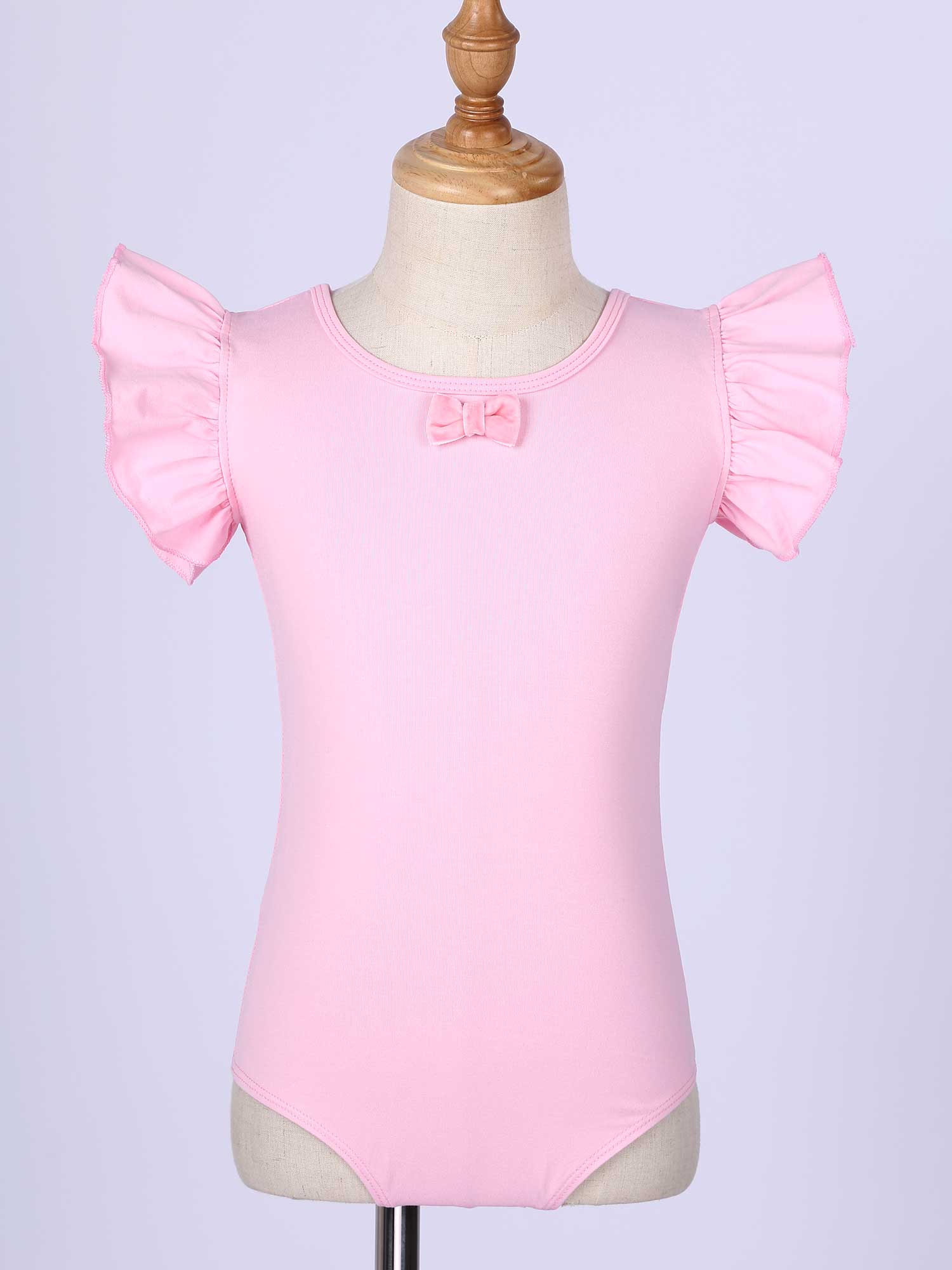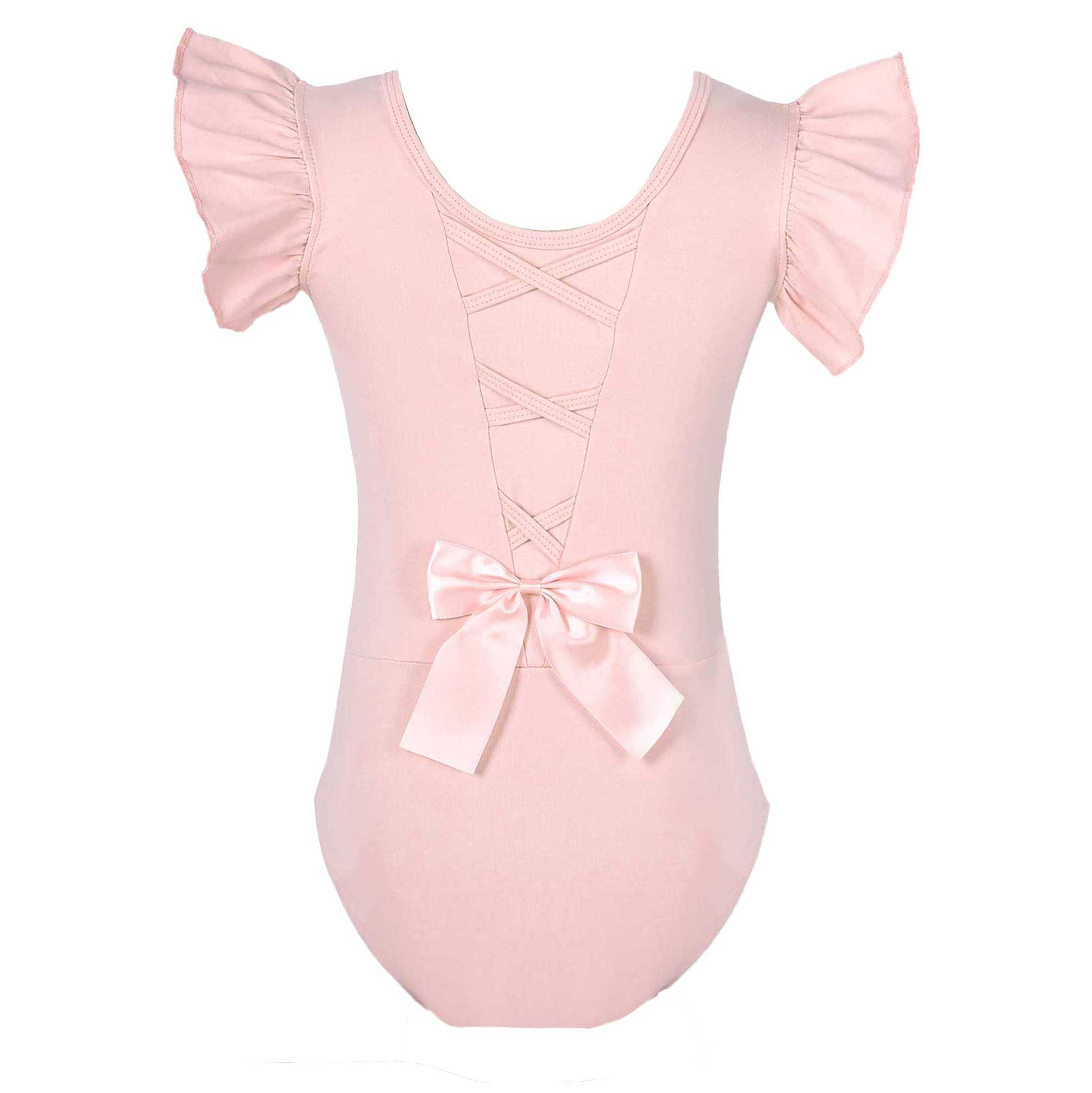#110-160 стильная танцевальная одежда для девочек с рюшами, без рукавов, с круглым вырезом, галстук-бабочка, перекрещивающийся спереди, Декор бантом, купальник для выступлений