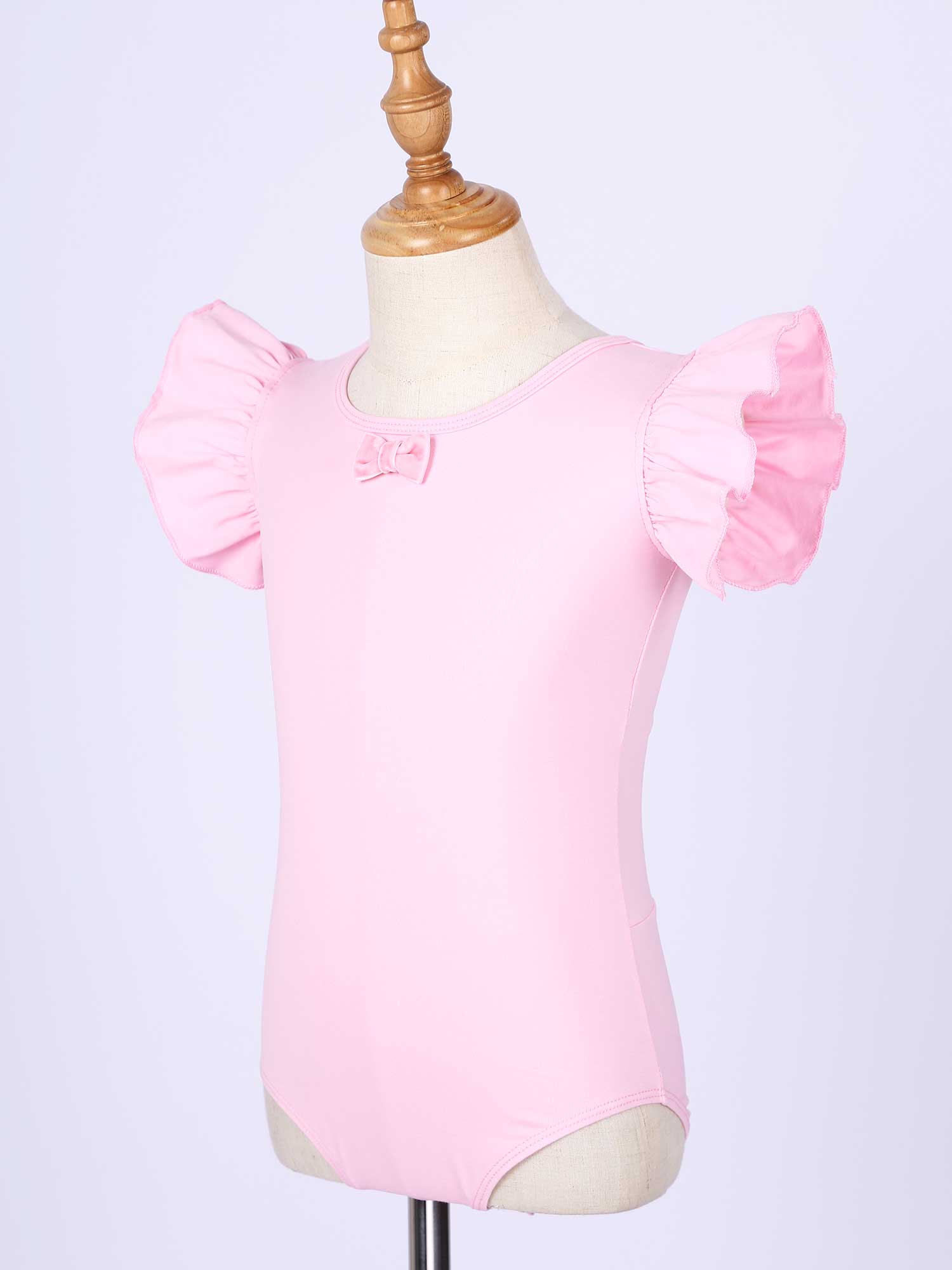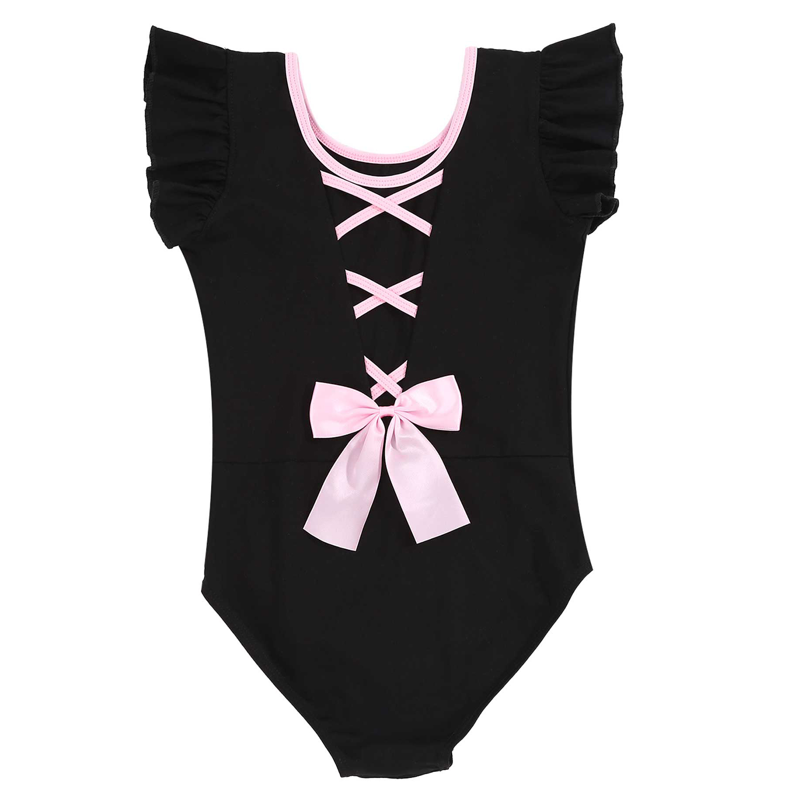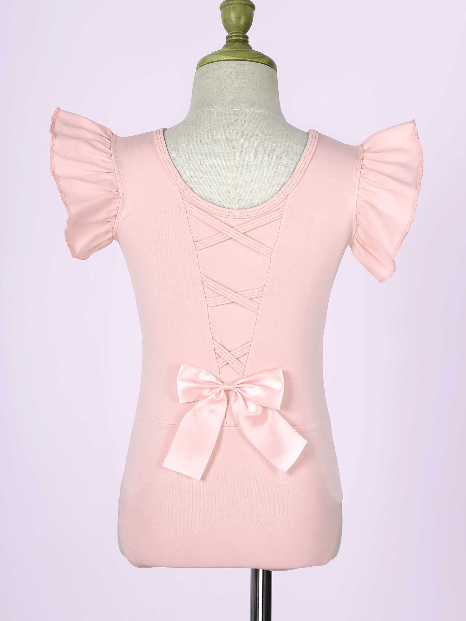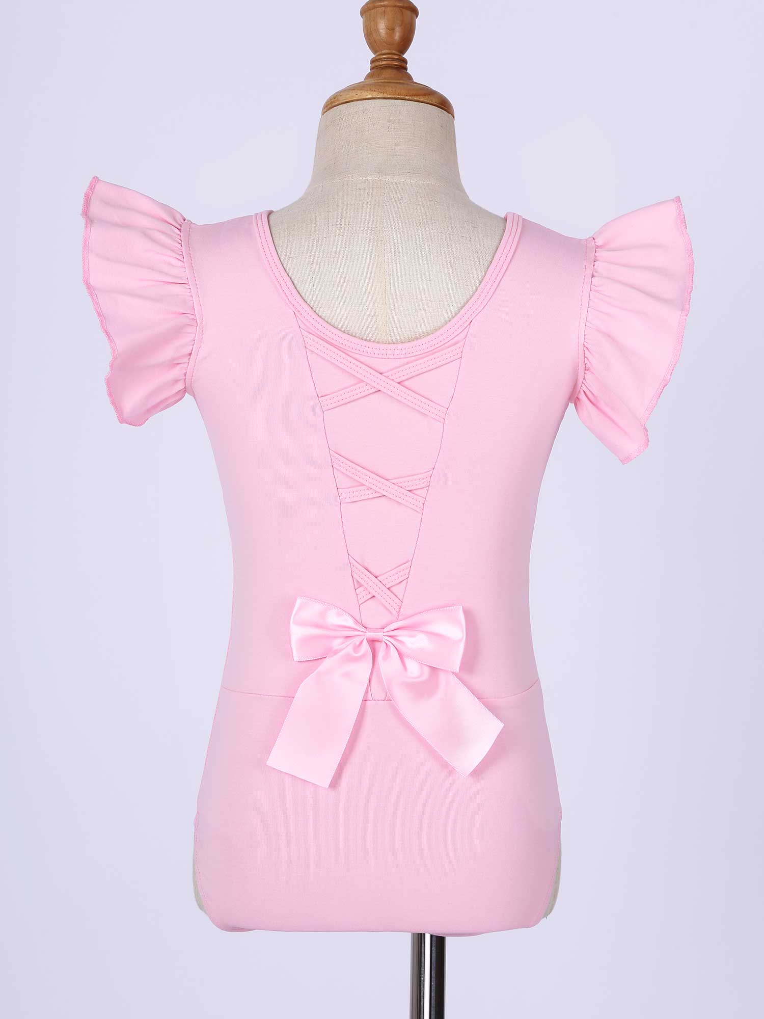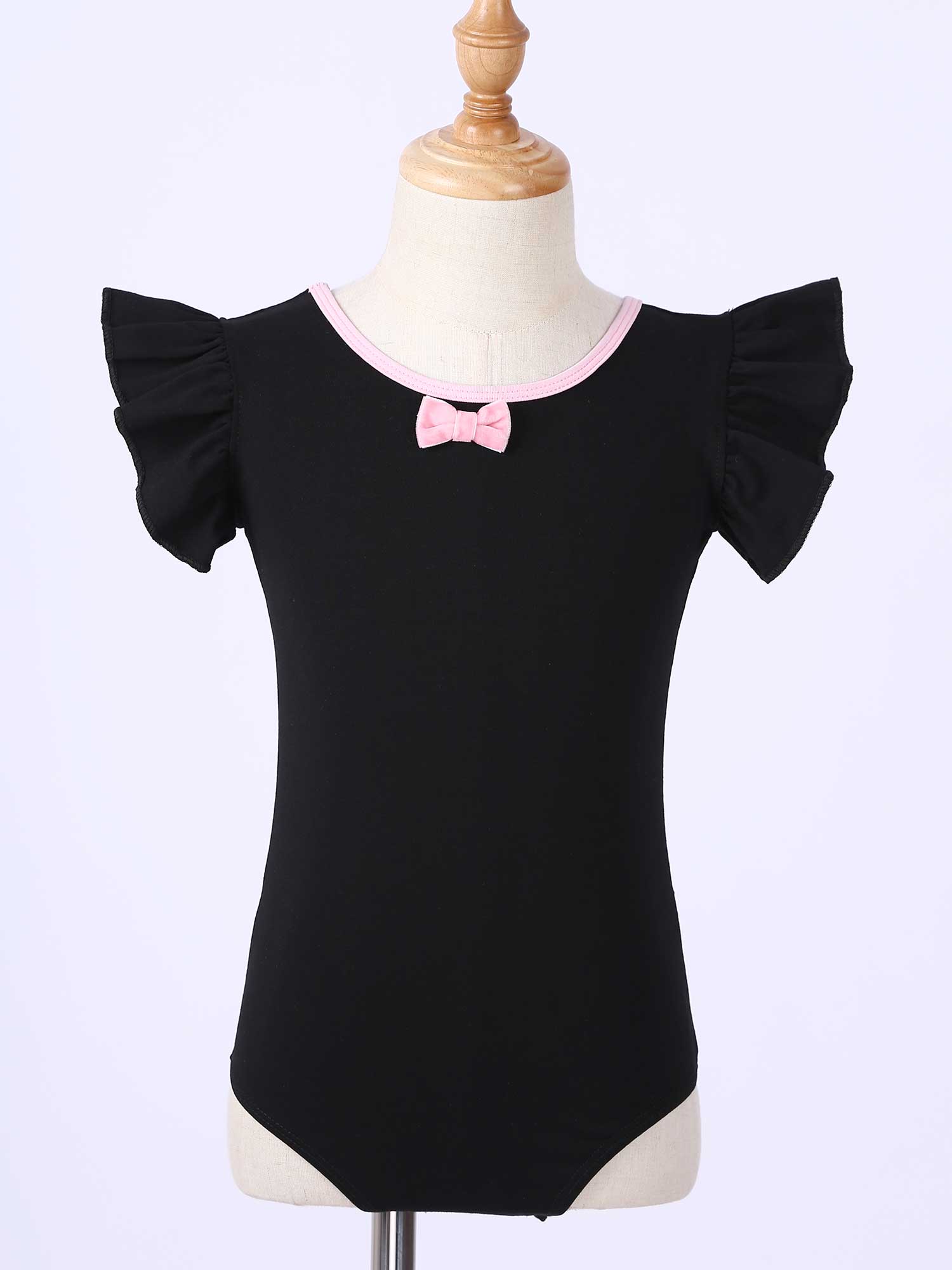 #110-160 стильная танцевальная одежда для девочек с рюшами, без рукавов, с круглым вырезом, галстук-бабочка, перекрещивающийся спереди, Декор бантом, купальник для выступлений