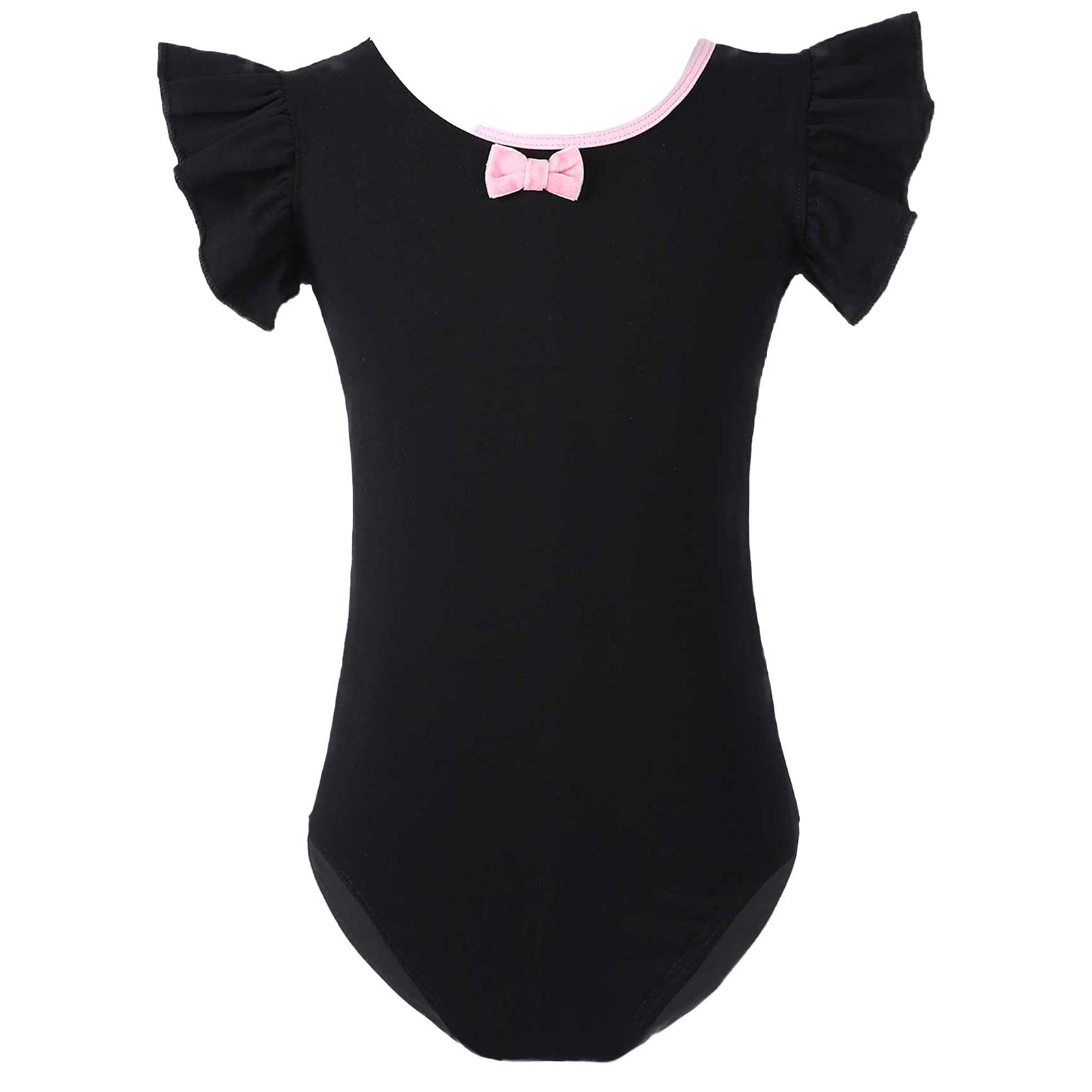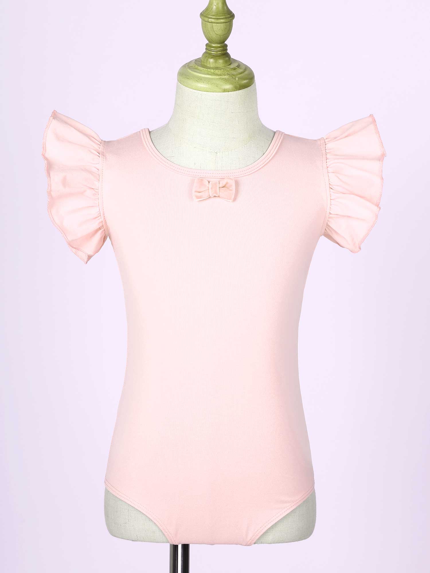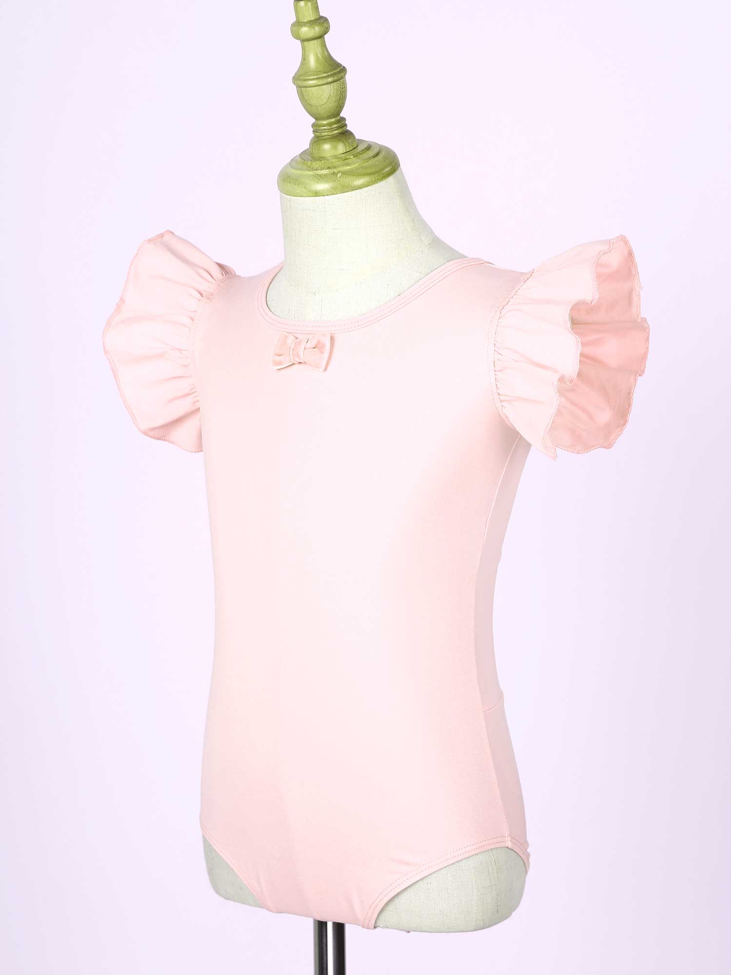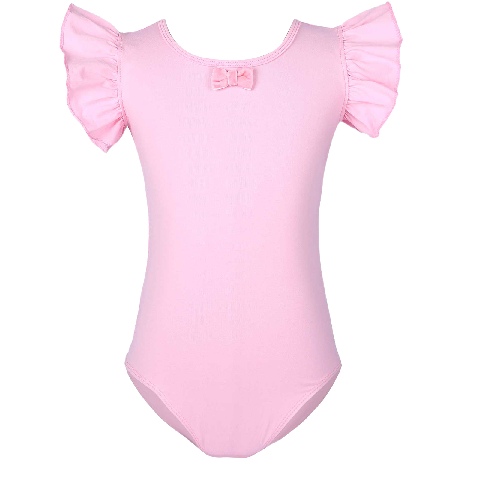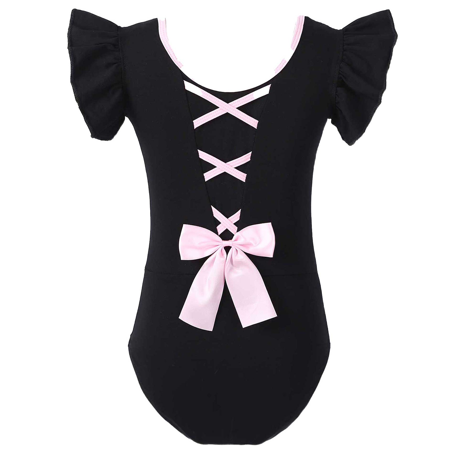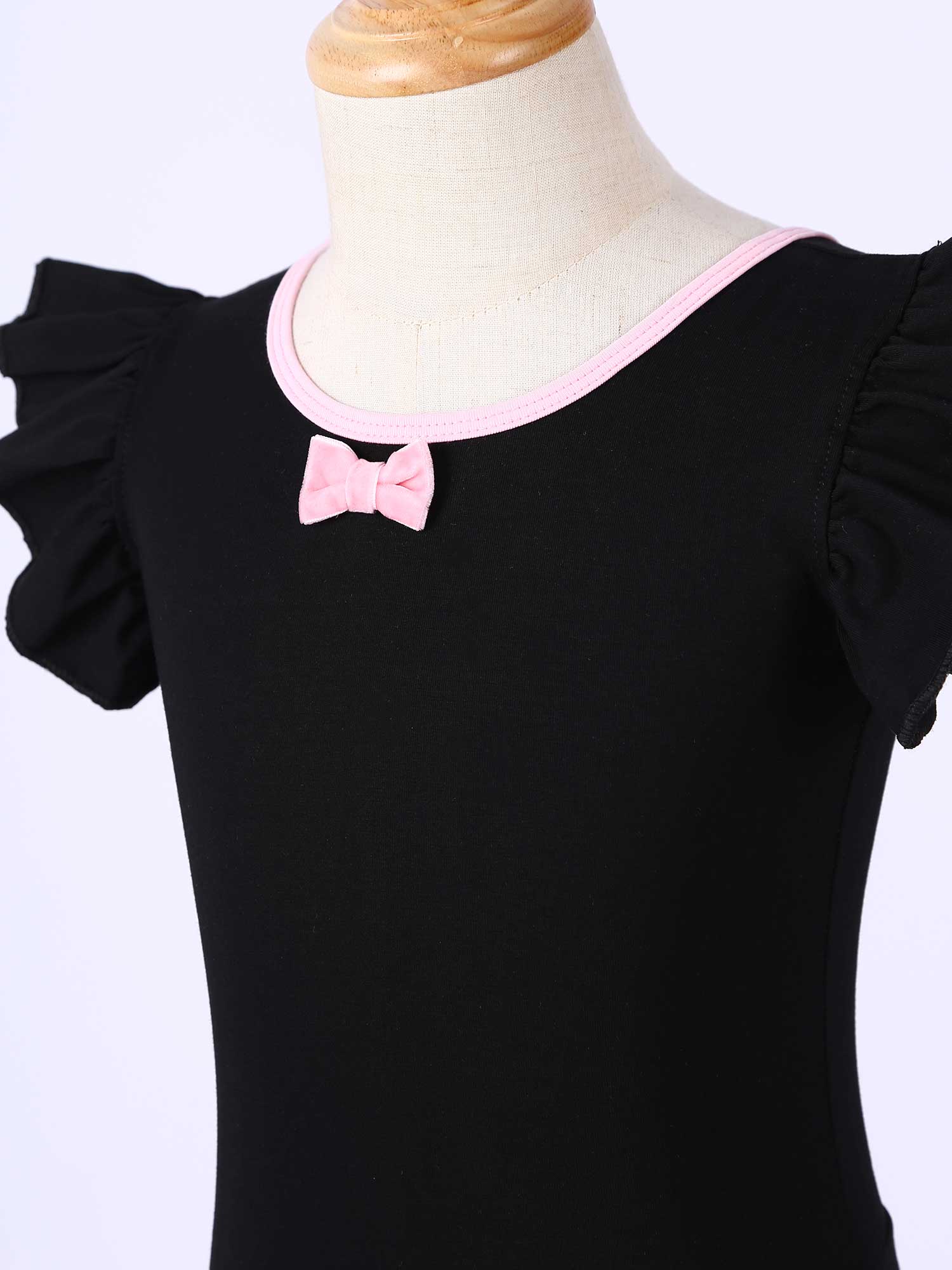 #110-160 стильная танцевальная одежда для девочек с рюшами, без рукавов, с круглым вырезом, галстук-бабочка, перекрещивающийся спереди, Декор бантом, купальник для выступлений