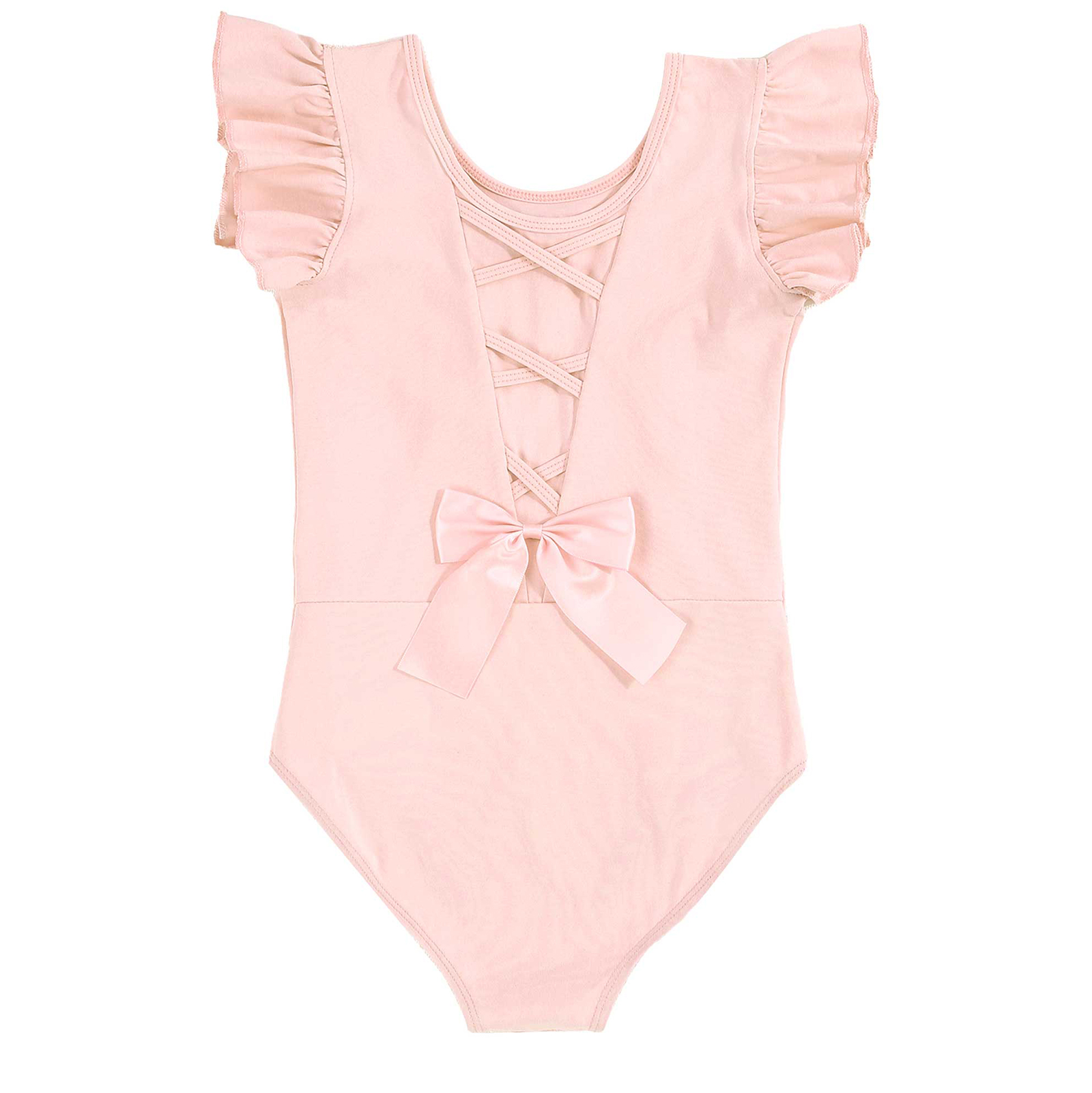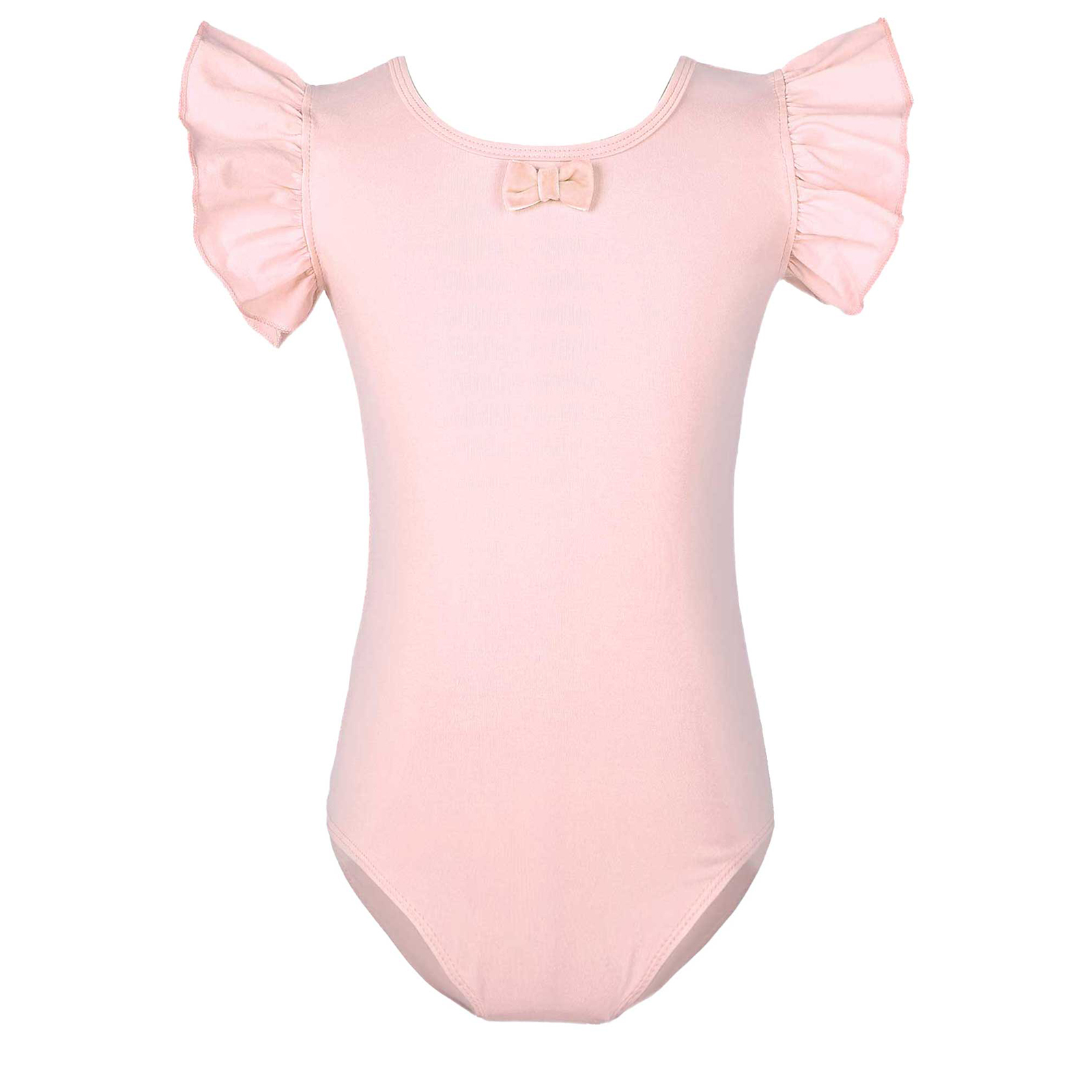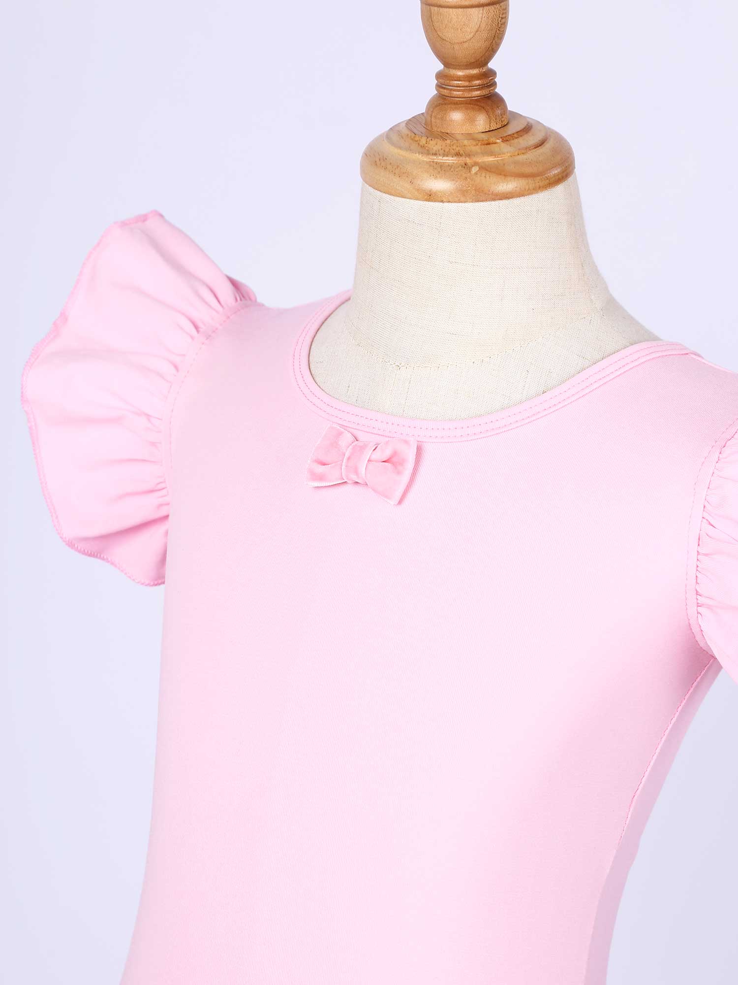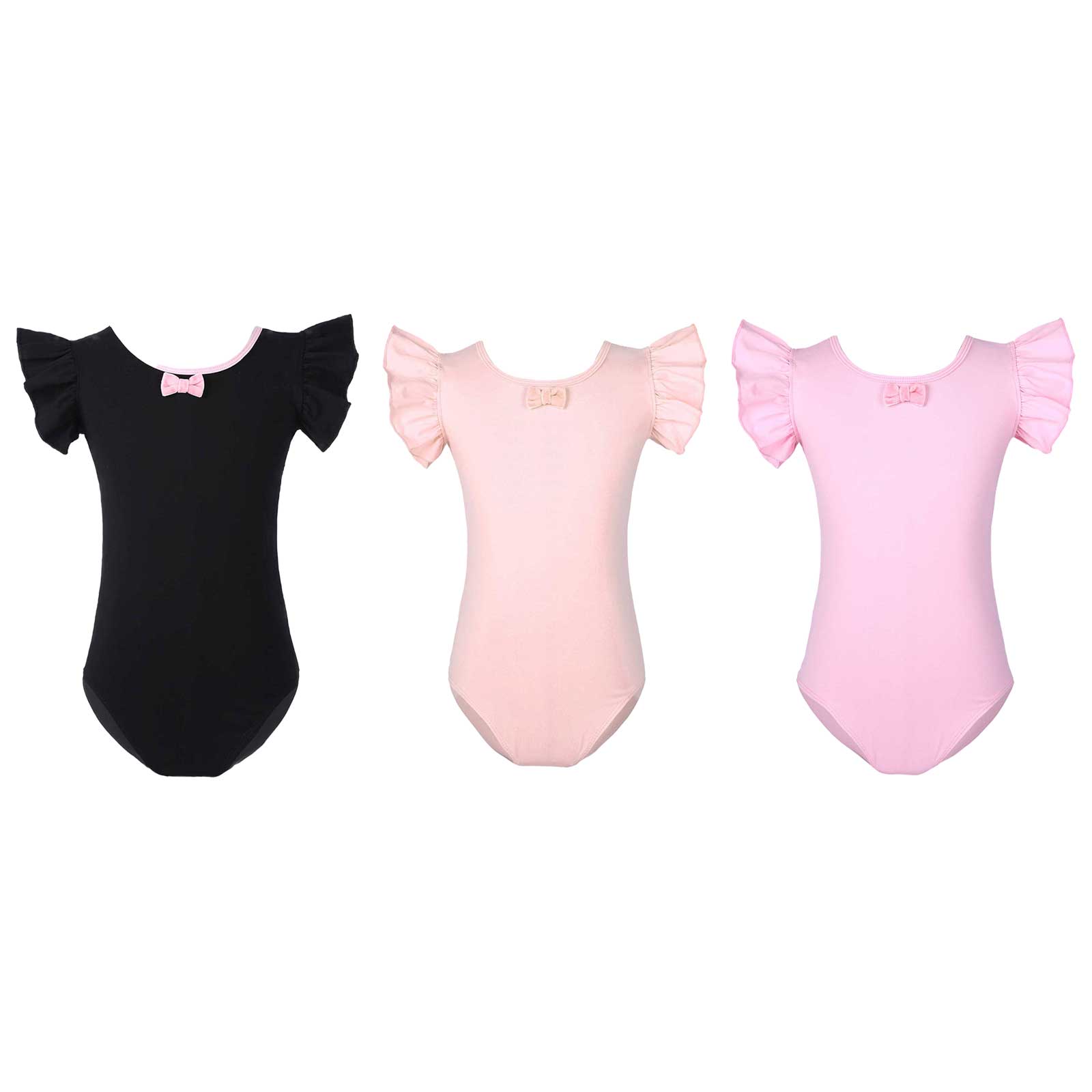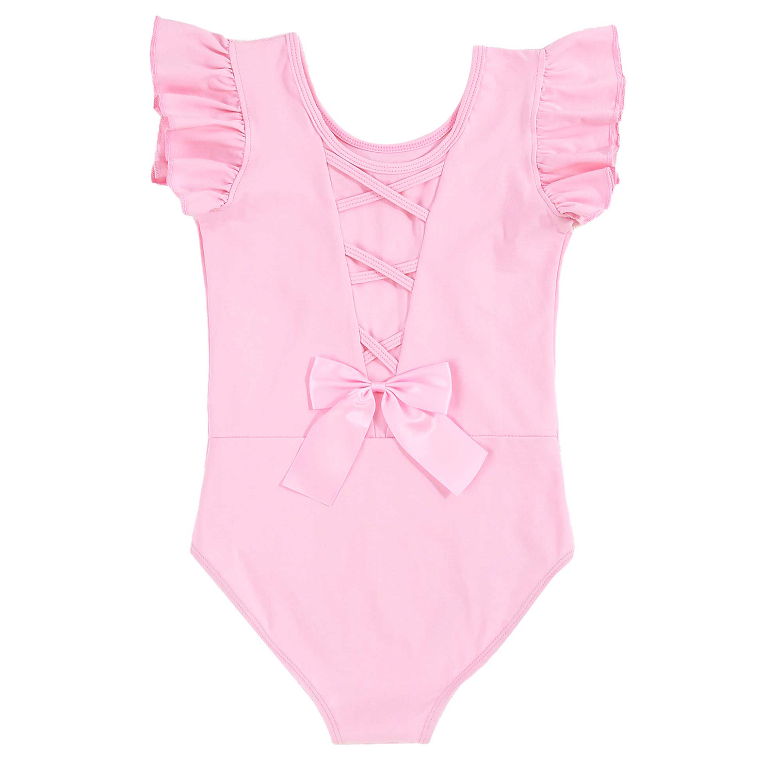 #110-160 стильная танцевальная одежда для девочек с рюшами, без рукавов, с круглым вырезом, галстук-бабочка, перекрещивающийся спереди, Декор бантом, купальник для выступлений