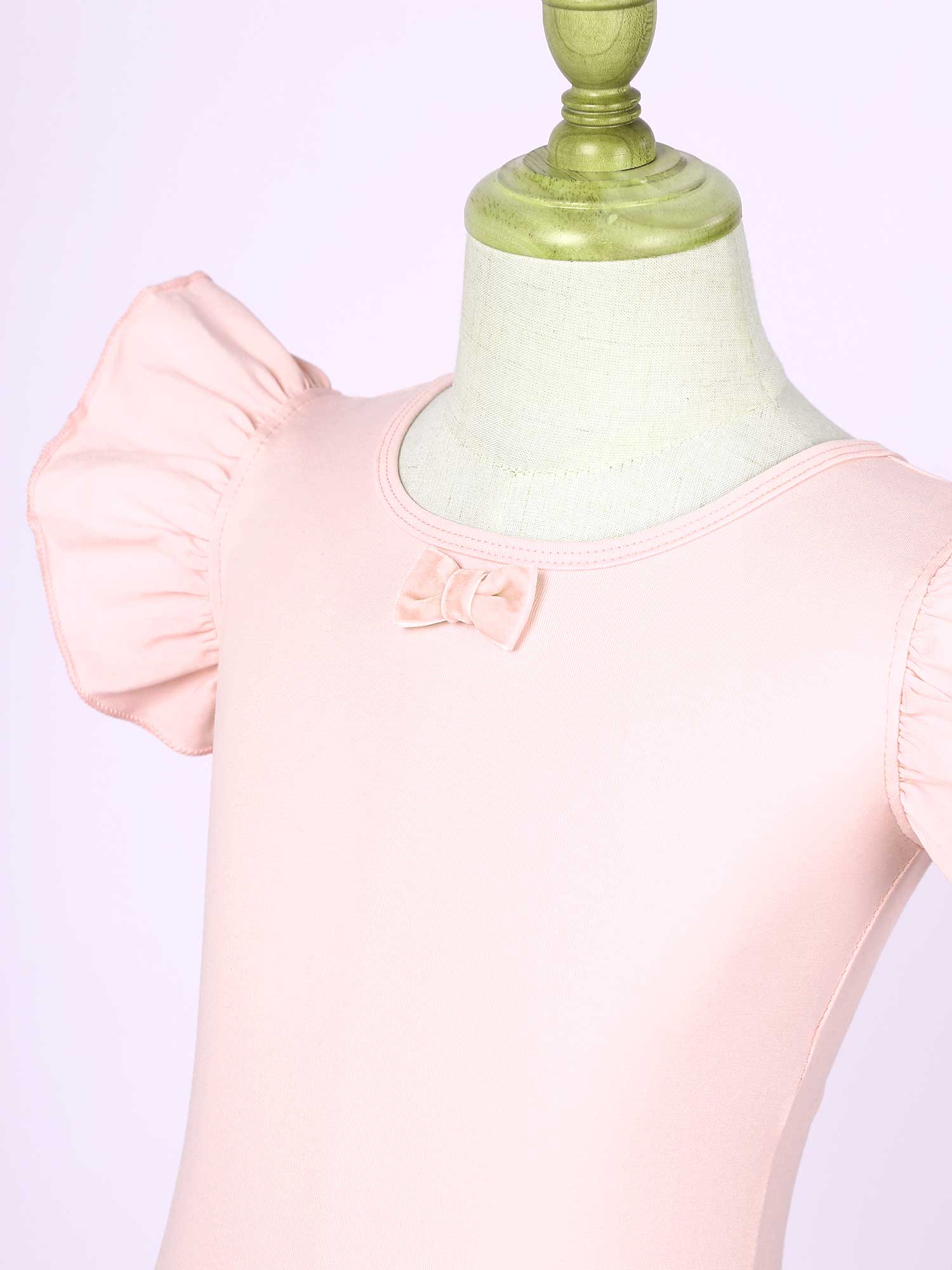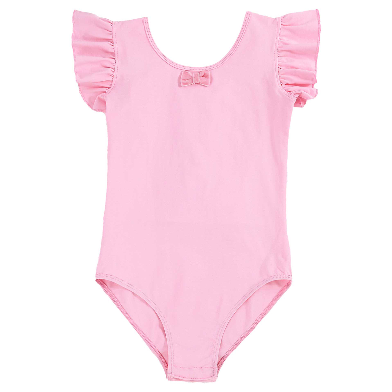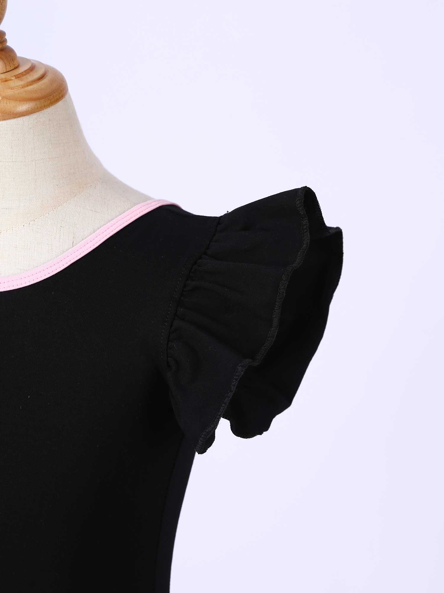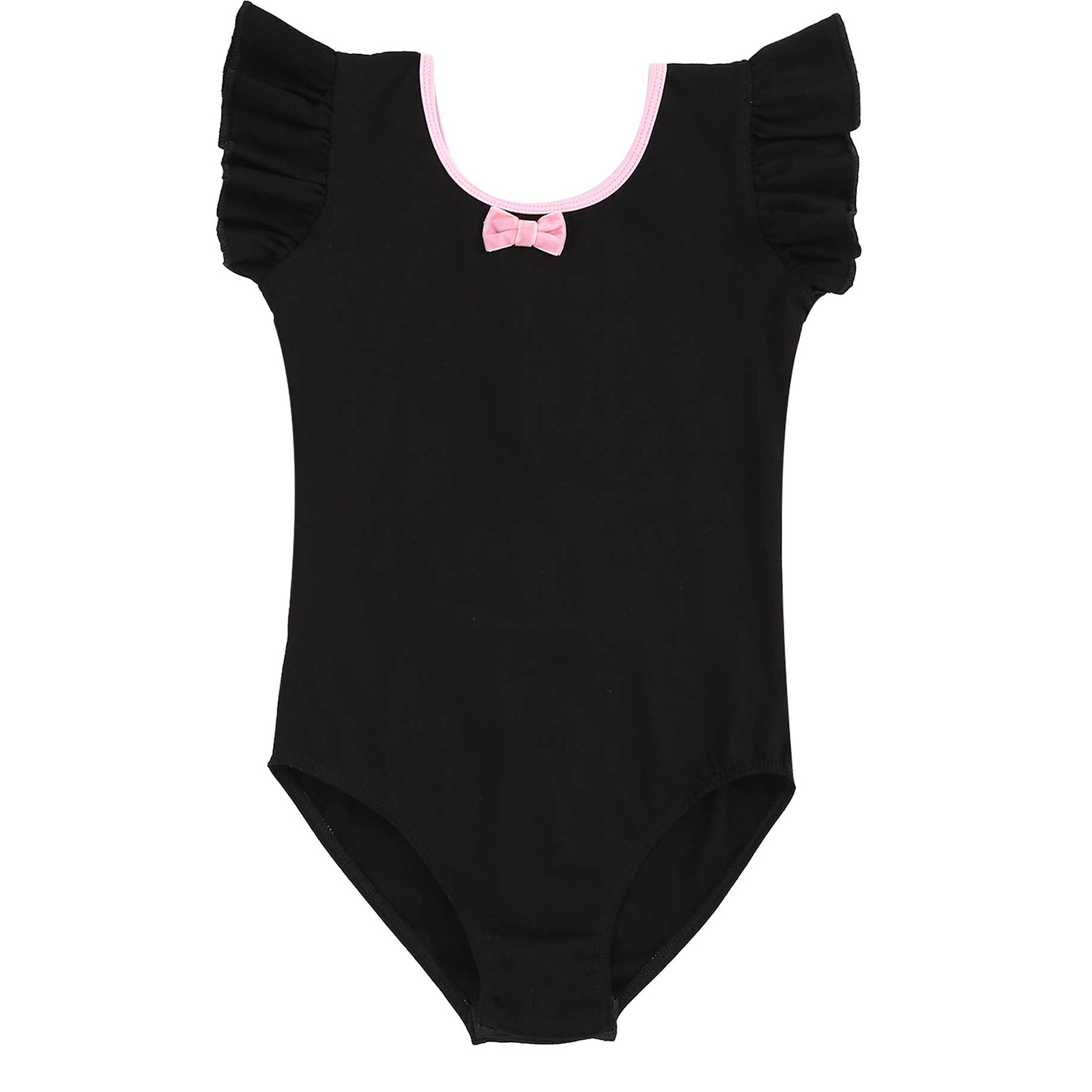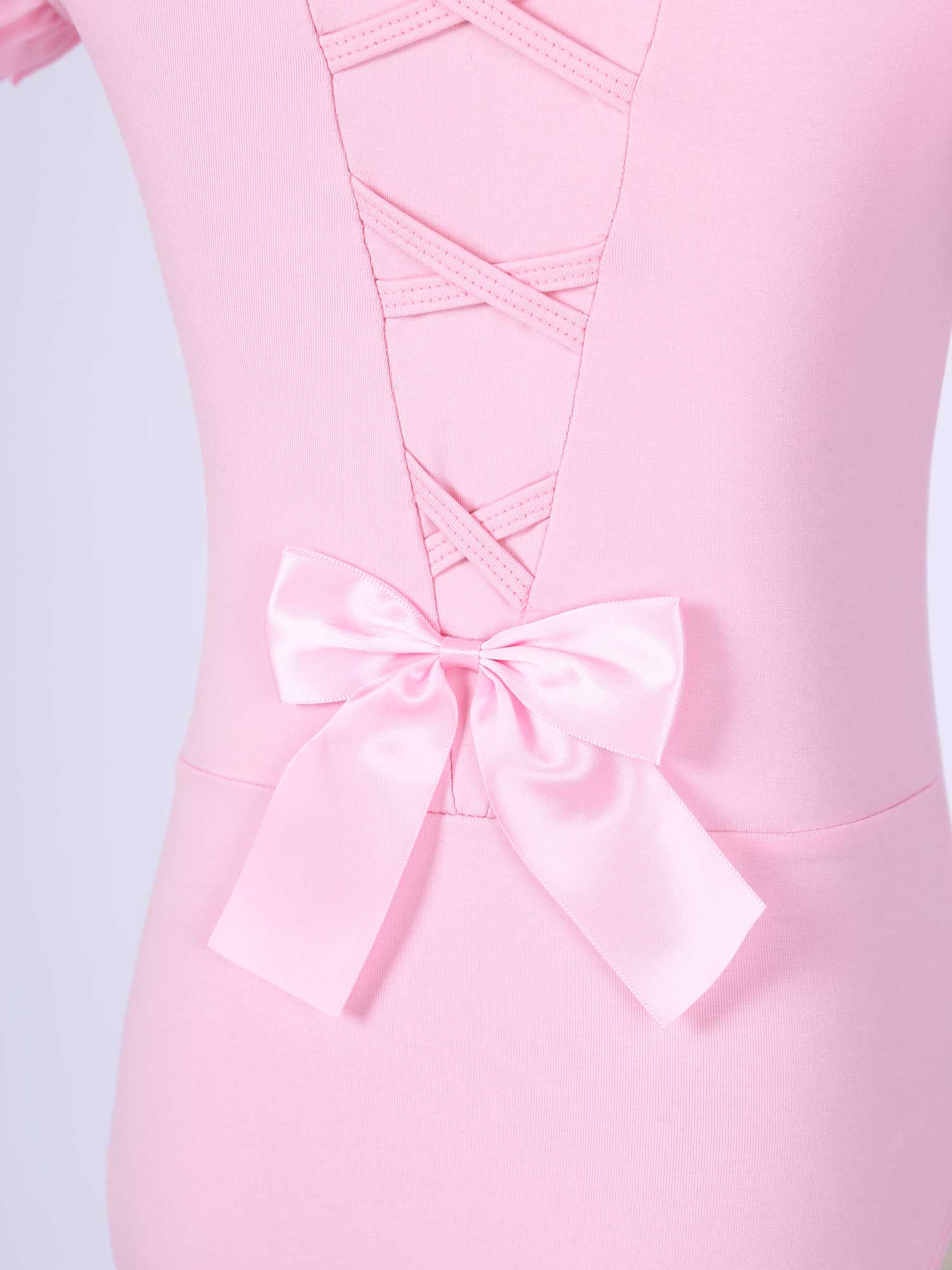 #110-160 стильная танцевальная одежда для девочек с рюшами, без рукавов, с круглым вырезом, галстук-бабочка, перекрещивающийся спереди, Декор бантом, купальник для выступлений
