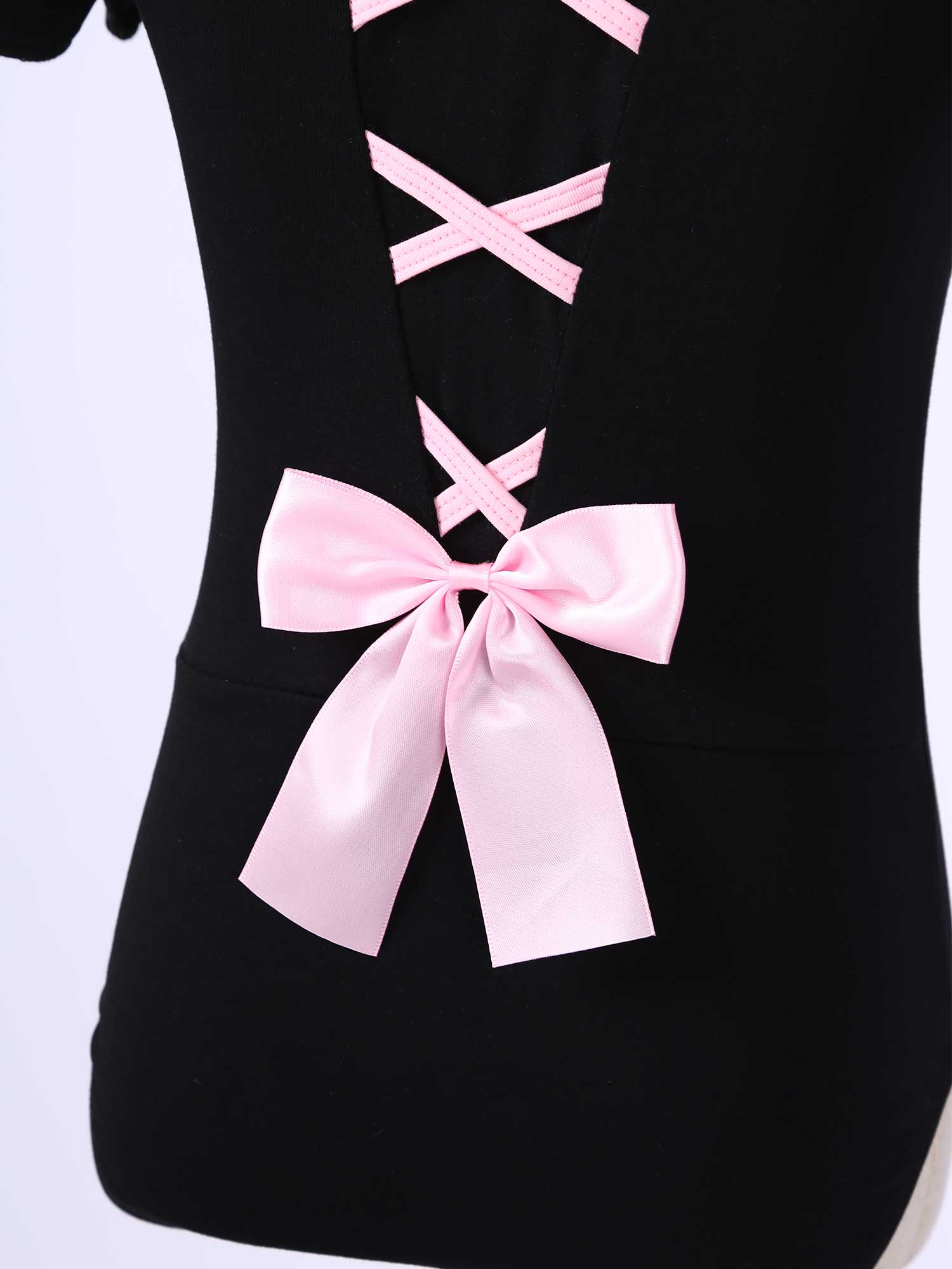 Особенности: без рукавов, круглый вырез, бант спереди, крест-накрест и бант сзади.