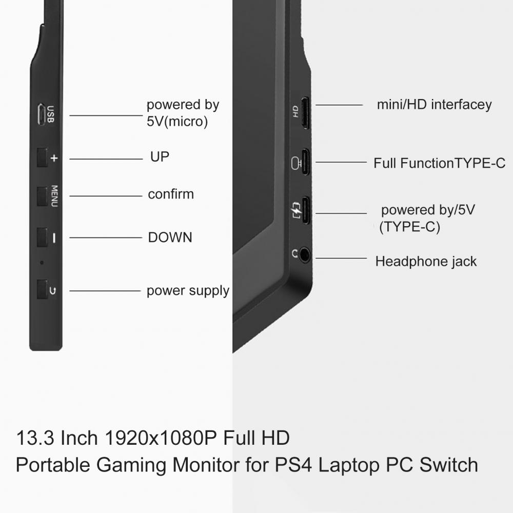 Портативный экран 15,6 дюйма HD IPS-pro 178 градусов 1080P HDMI-совместимый Встроенный динамик для Xbox PS4/5 Switch смартфона