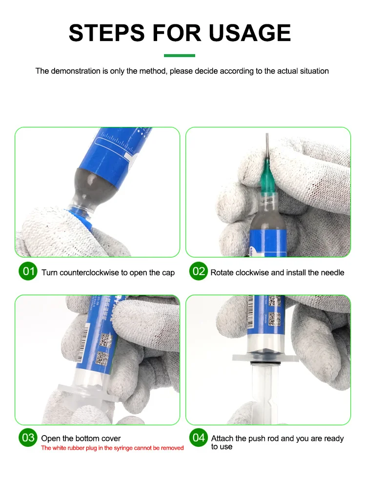 > Простая упаковка типа шприца, оснащена подходящей игольчатой трубкой, чтобы обеспечить простое и удобное использование и отсутствие отходов сварки, экономя затраты на техническое обслуживание персонала