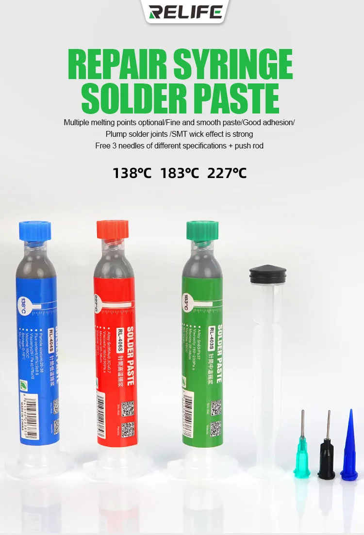 Паяльная паста RELIFE RL-404S 138 ℃ (10CC, подходящая игла + Паттер)