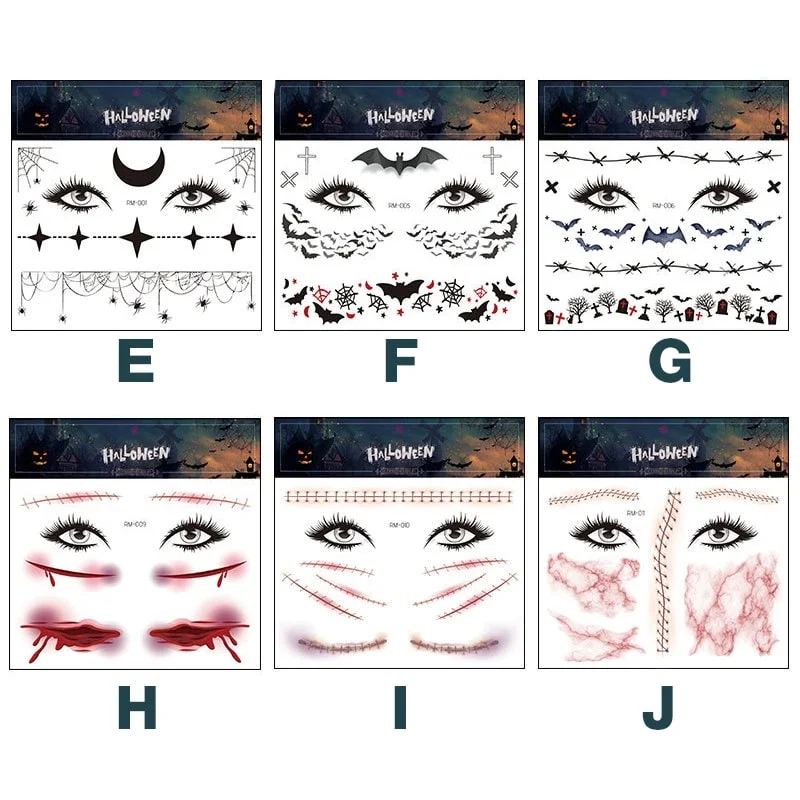 Водонепроницаемый временный стикер татуировки на ХэллоуинX 6 шт. (E,F,G,H,I,J)