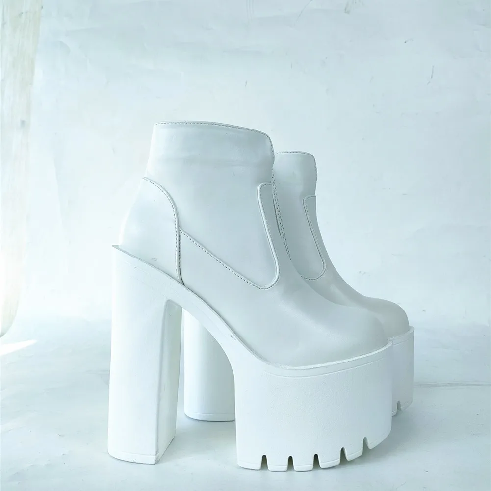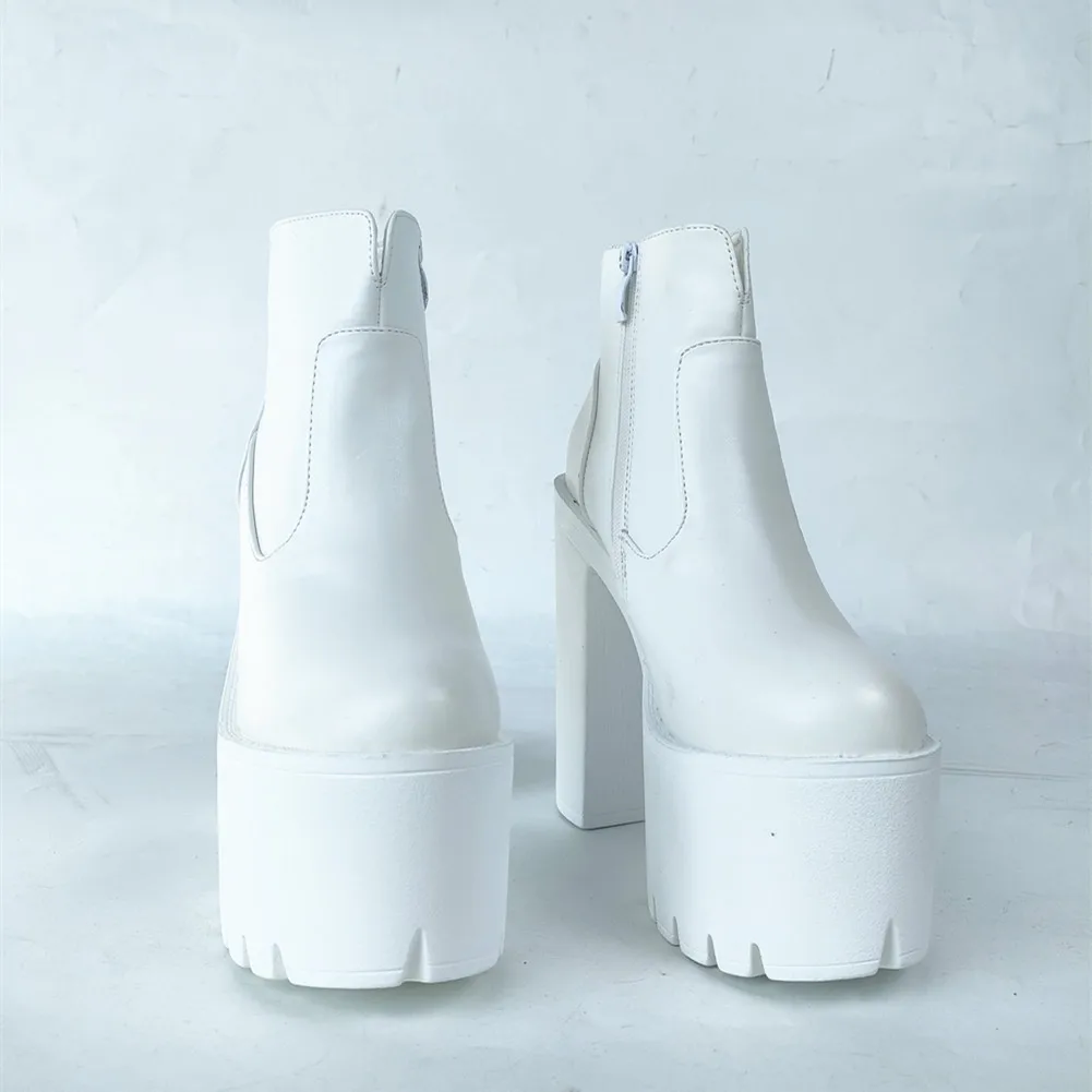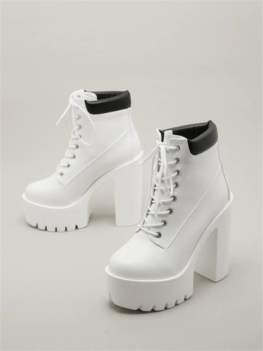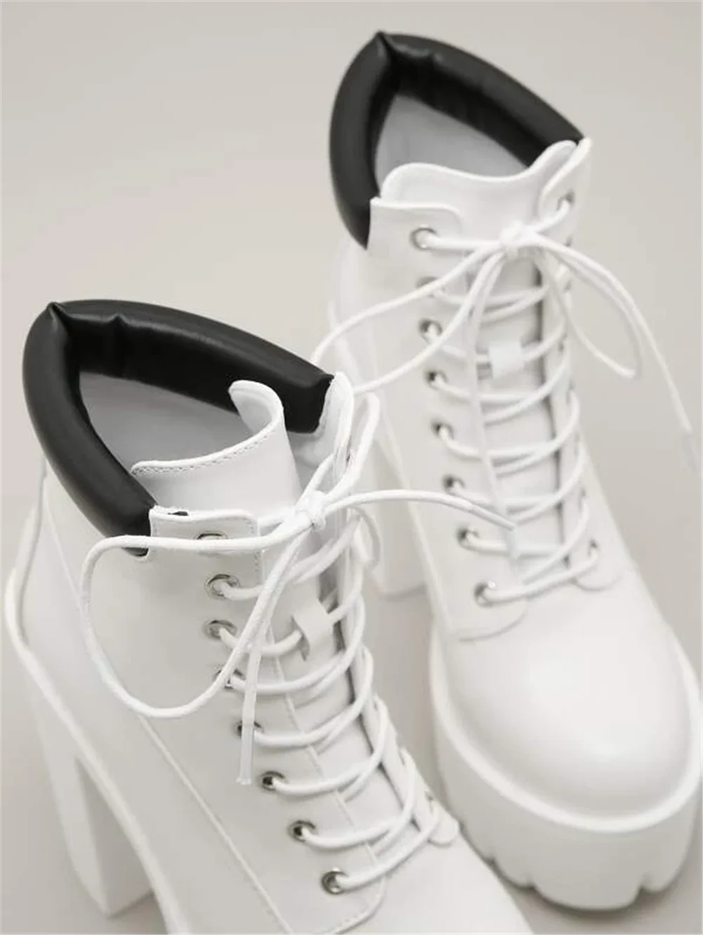 Женские ботинки; Осенняя женская обувь на платформе; Цвет белый, черный; Ботильоны на очень высоком массивном каблуке; Обувь высокого качества; Новинка 2021 года; Брендовая женская обувь
