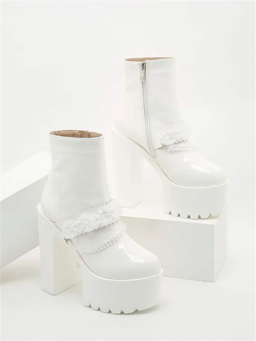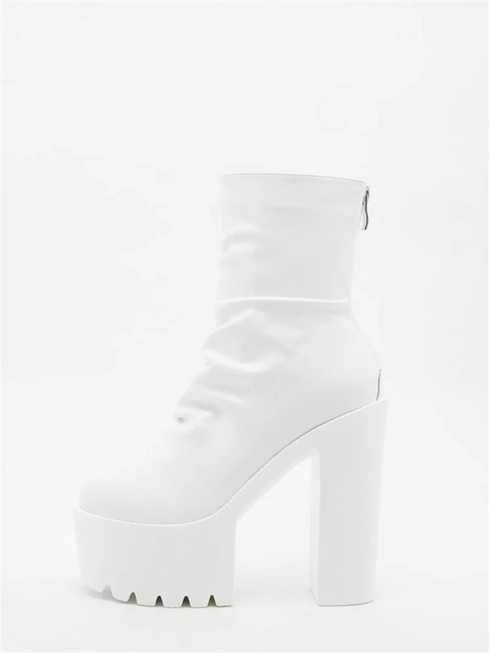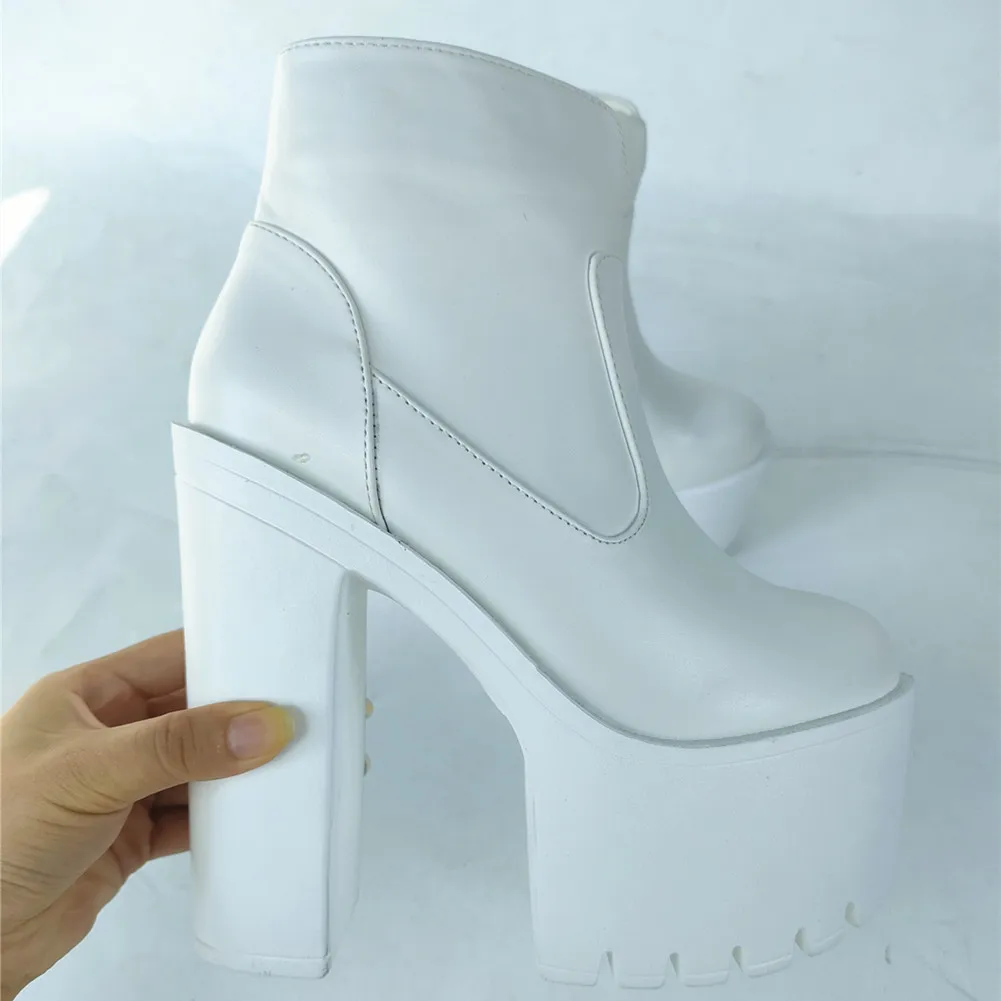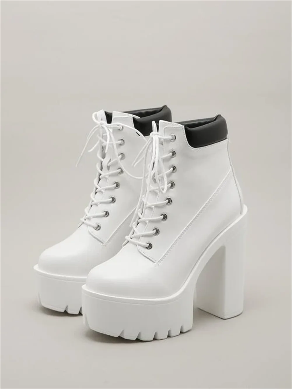 Женские ботинки; Осенняя женская обувь на платформе; Цвет белый, черный; Ботильоны на очень высоком массивном каблуке; Обувь высокого качества; Новинка 2021 года; Брендовая женская обувь