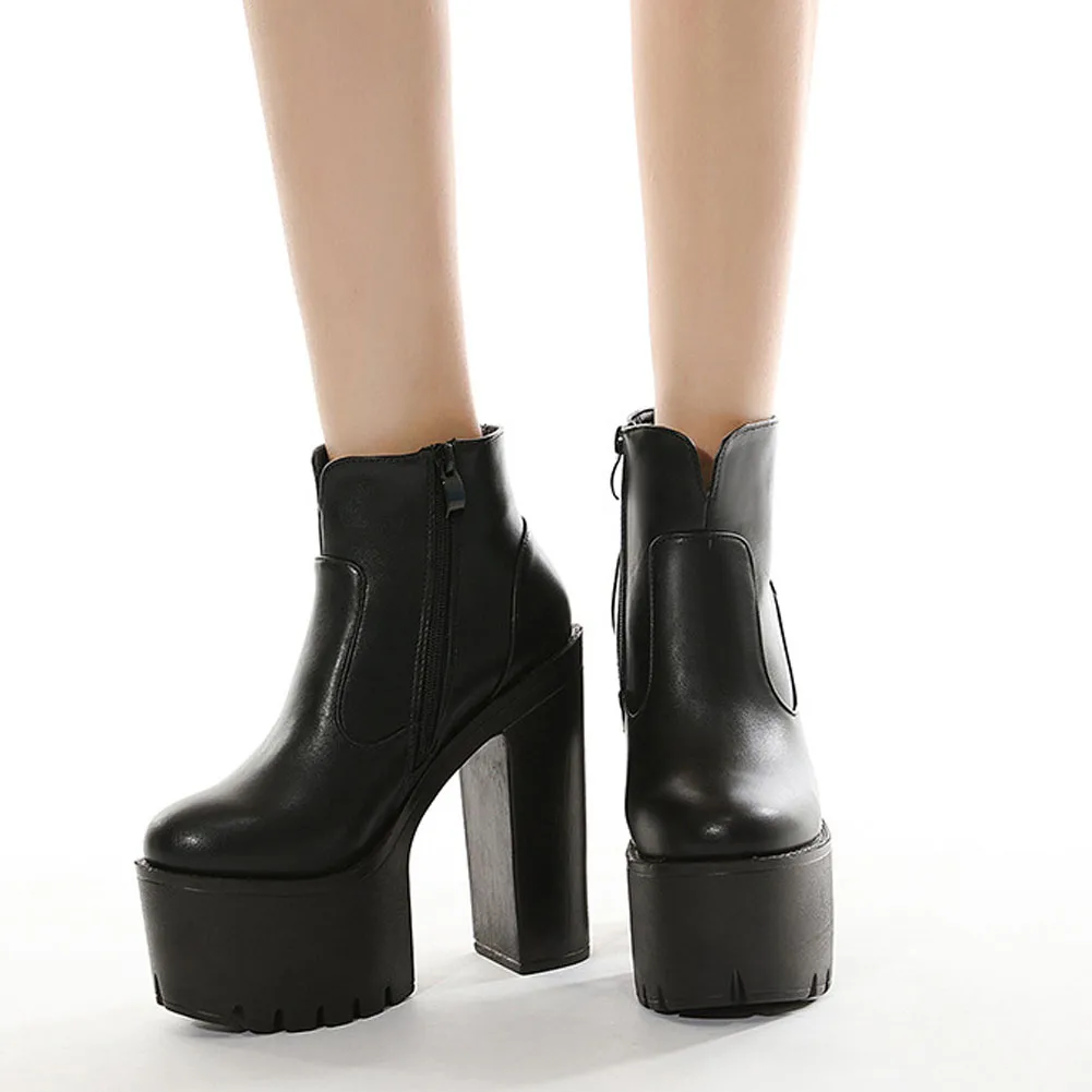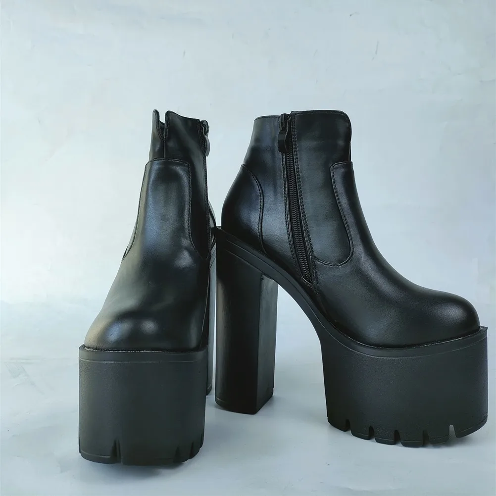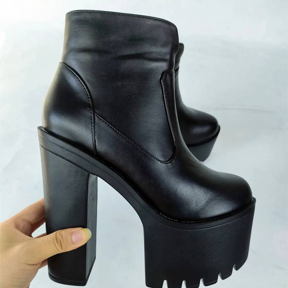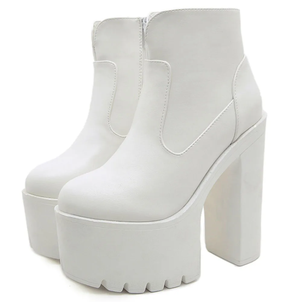 Женские ботинки; Осенняя женская обувь на платформе; Цвет белый, черный; Ботильоны на очень высоком массивном каблуке; Обувь высокого качества; Новинка 2021 года; Брендовая женская обувь