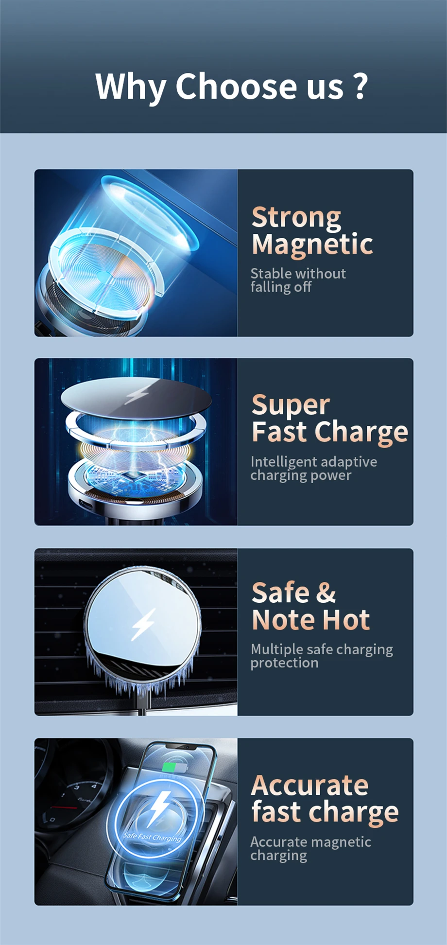 *What you get*1 Wireless car charger, 1 Air vent clip, 1 Type C cable, 1 User manual.