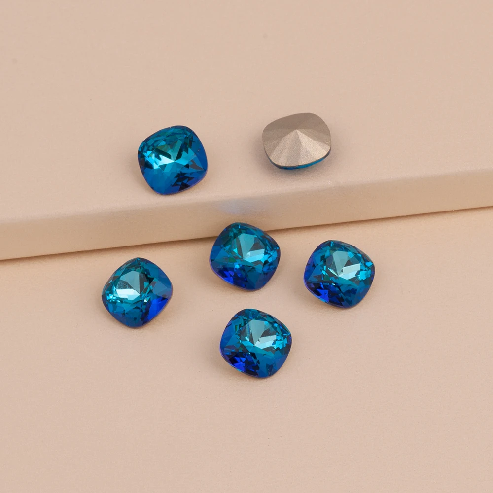 10pcs 8mm Cushion Cut Shape Crystal Glitter Glass Rhinestones