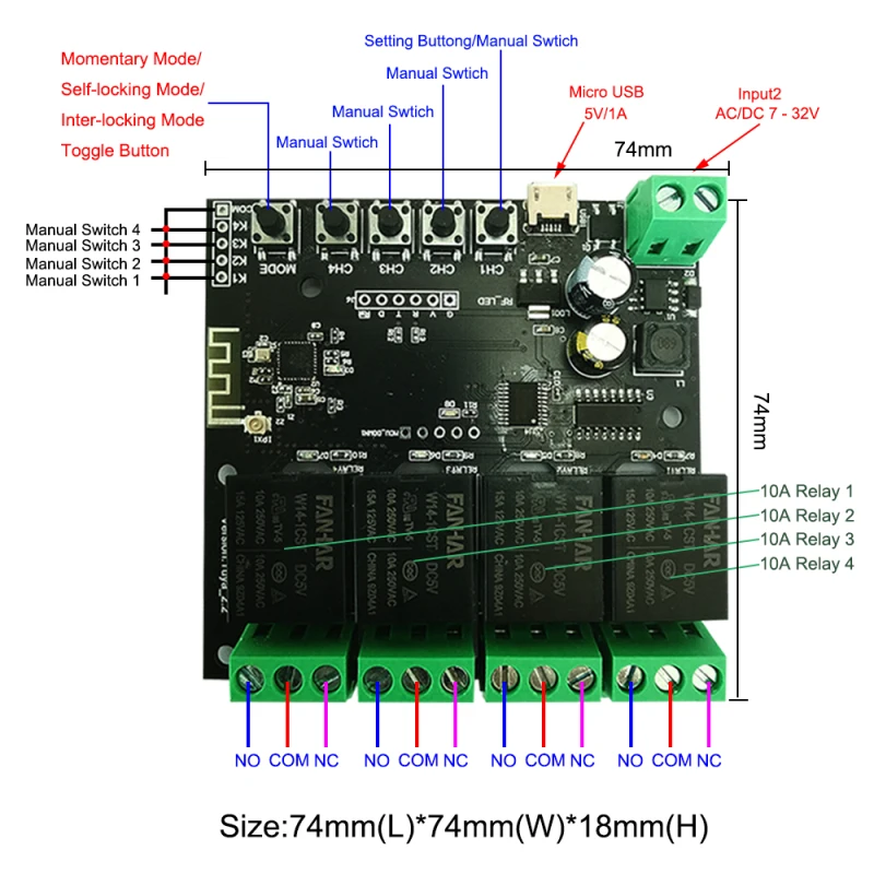 3-сторонний выход: dc5v-32v, 4-полосная, автофиксацией/шаговым управлением/с бистабильным самоблокирующимся переключателем, 4-полосная управления Wi-Fi модуль в Китае (стандарты CE, по ограничению на использование опасных материалов в производстве