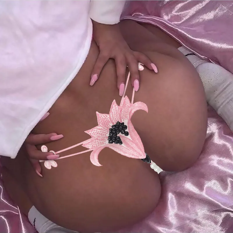 Женские сексуальные кружевные трусики с бантом и черной бабочкой.