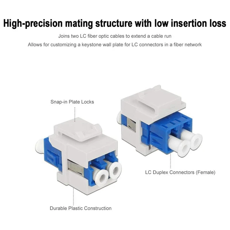 Защитные колпачки на LC к LC муфте, чтобы убедиться, что волокно keystone jack и многомодовые волоконные кабели чистые и безопасные. Установка женской и женской вставки keystone обеспечивает профессиональную установку в доме или офисе.