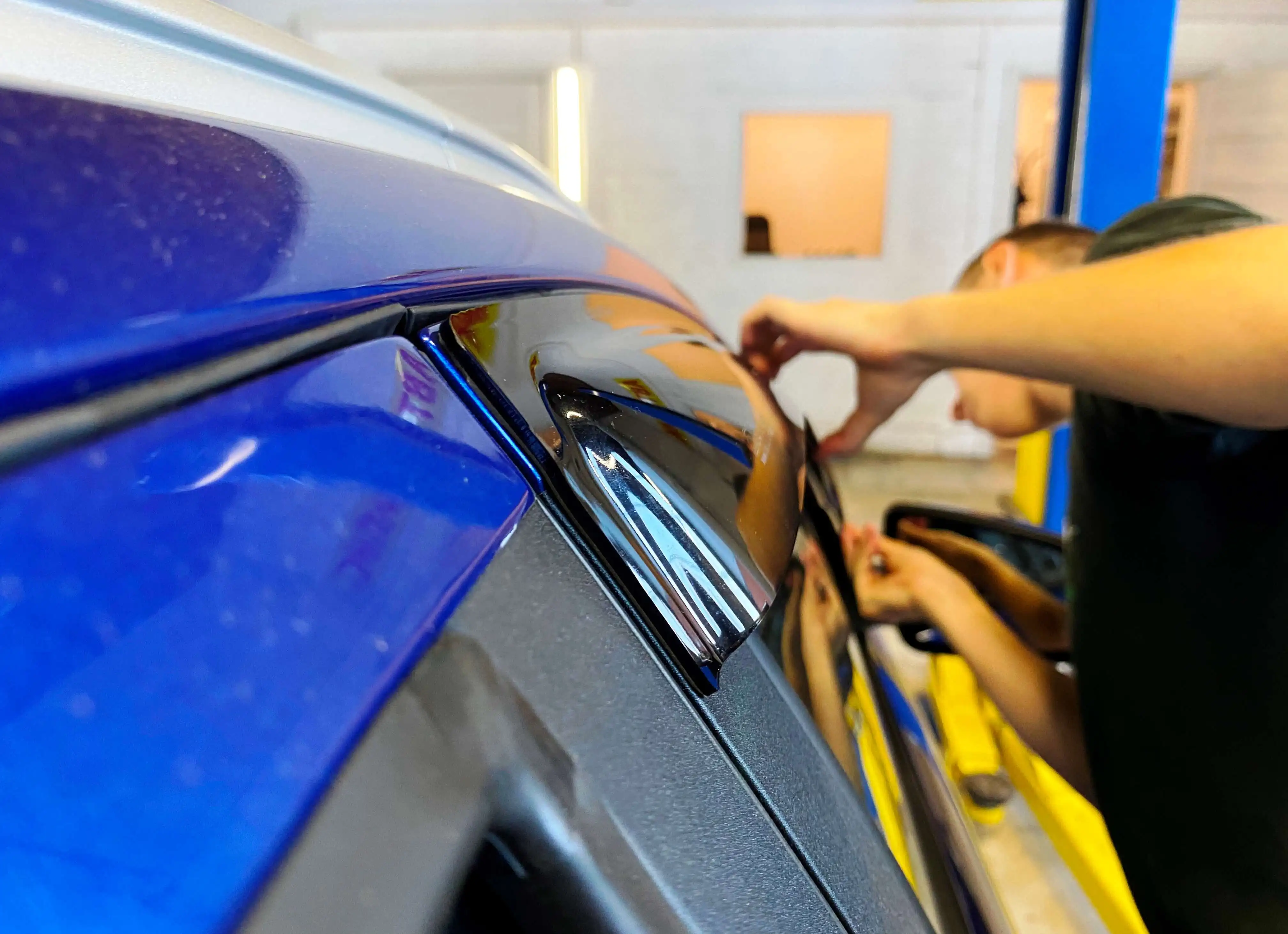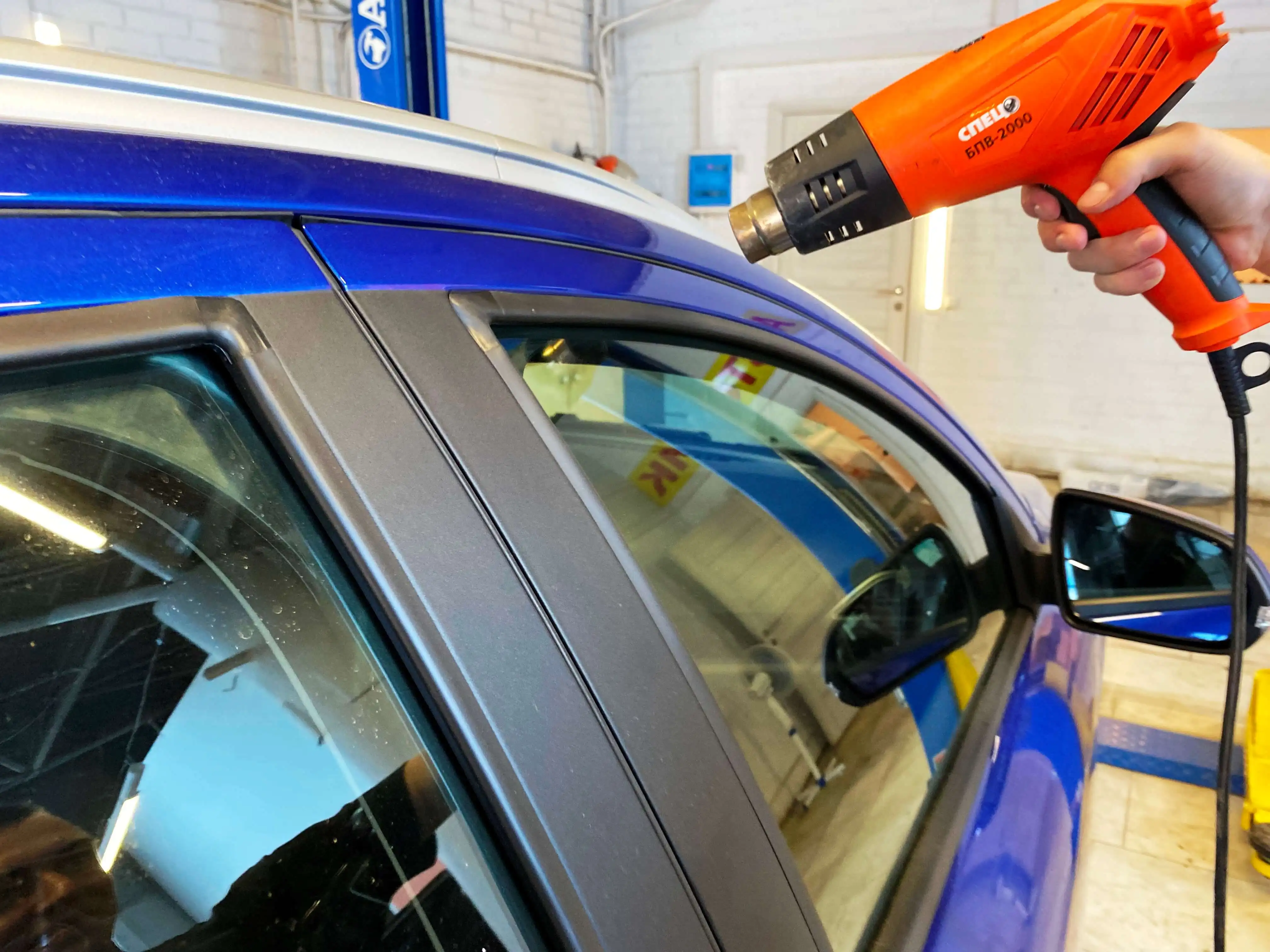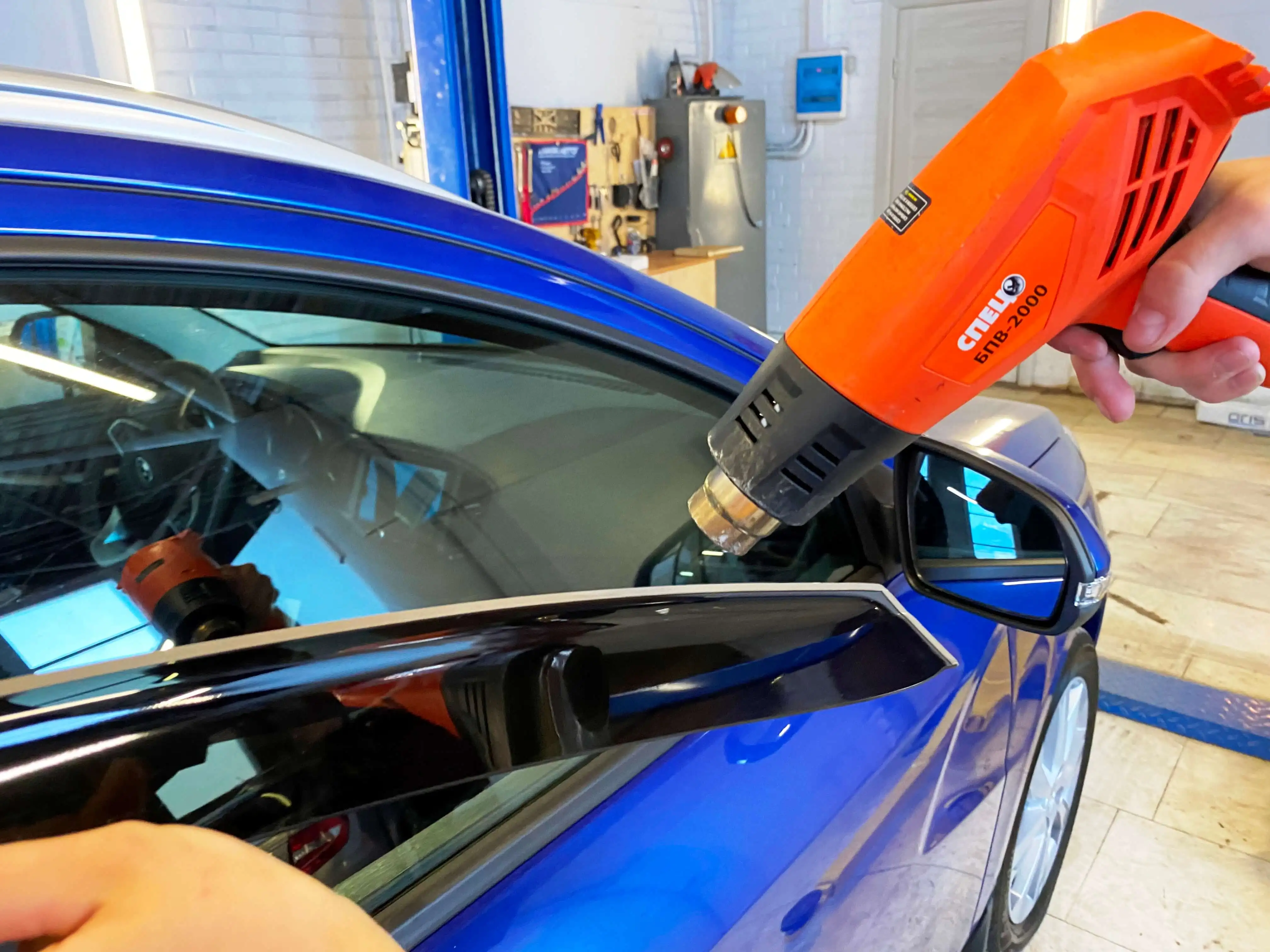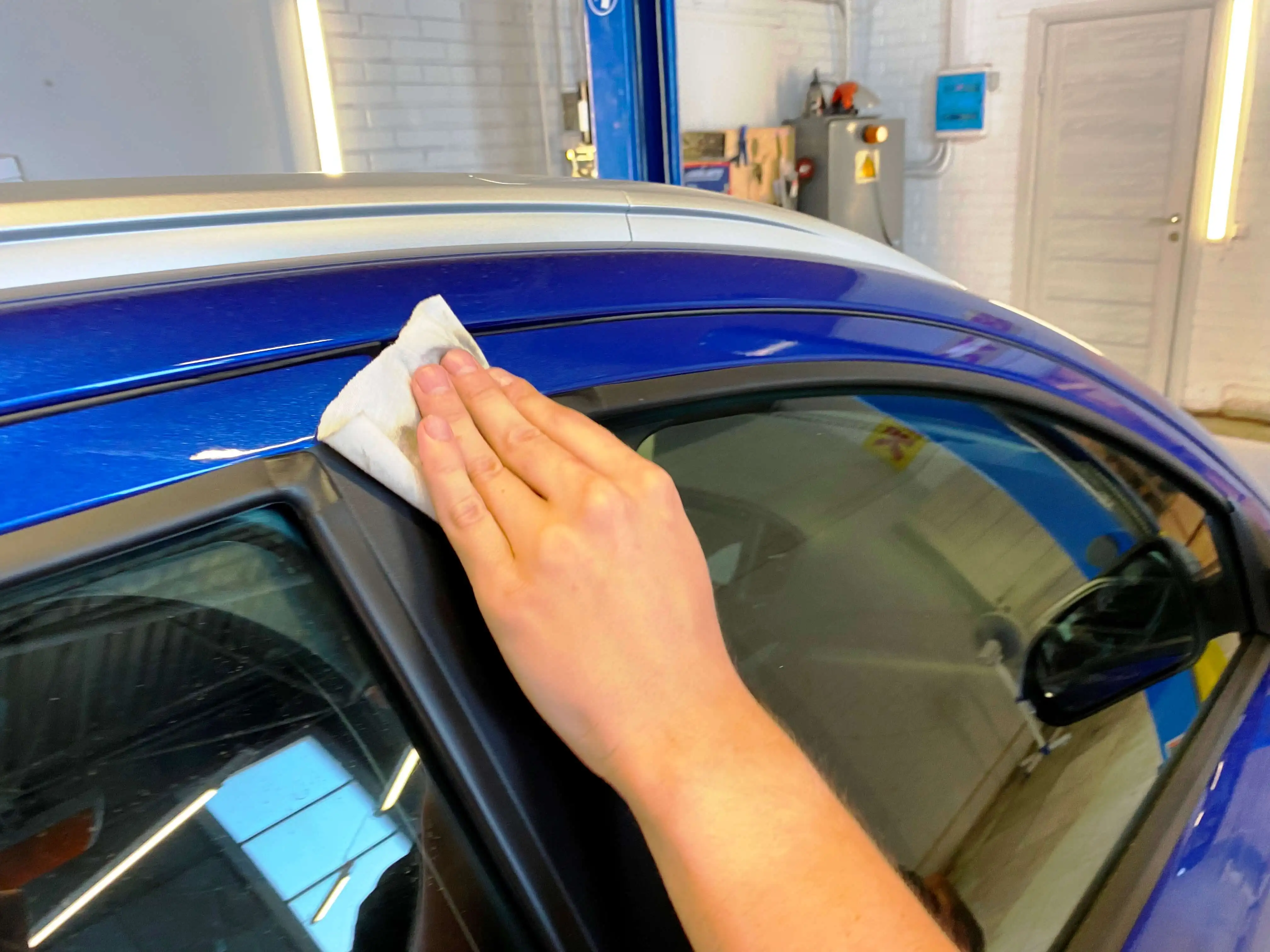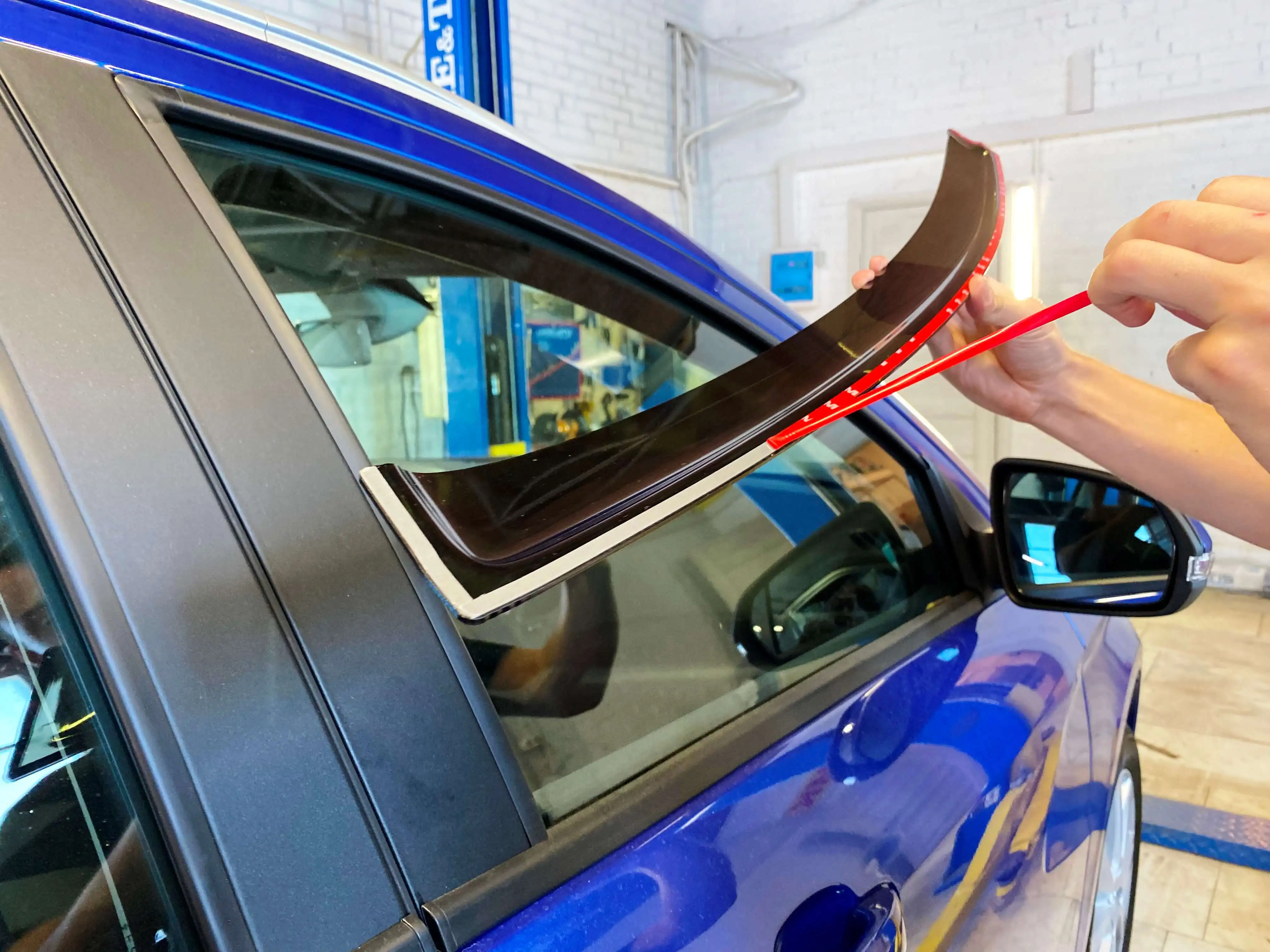 ПРИМЕЧАНИЕ. Температура окружающего воздуха и поверхности, на которую наклеивается дефлектор, должна быть свыше 15 градусов! Если на улице холодно, установку необходимо производить в гараже или на теплой парковке.