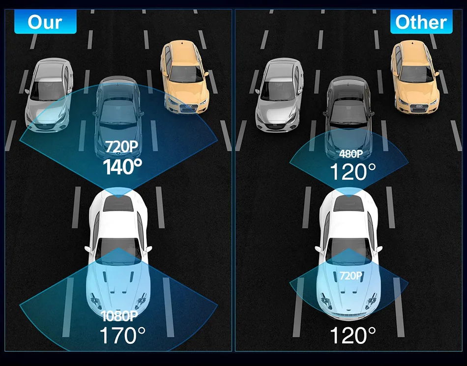 Умный угол заднего вида переключается между вождением и парковкой. Вы можете видеть все дополнительные транспортные средства и объекты четко позади. Во время вождения в режиме реального времени, и он автоматически включит камеру заднего вида, чтобы придать более близкое резервное изображение при парковке.