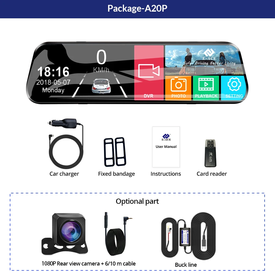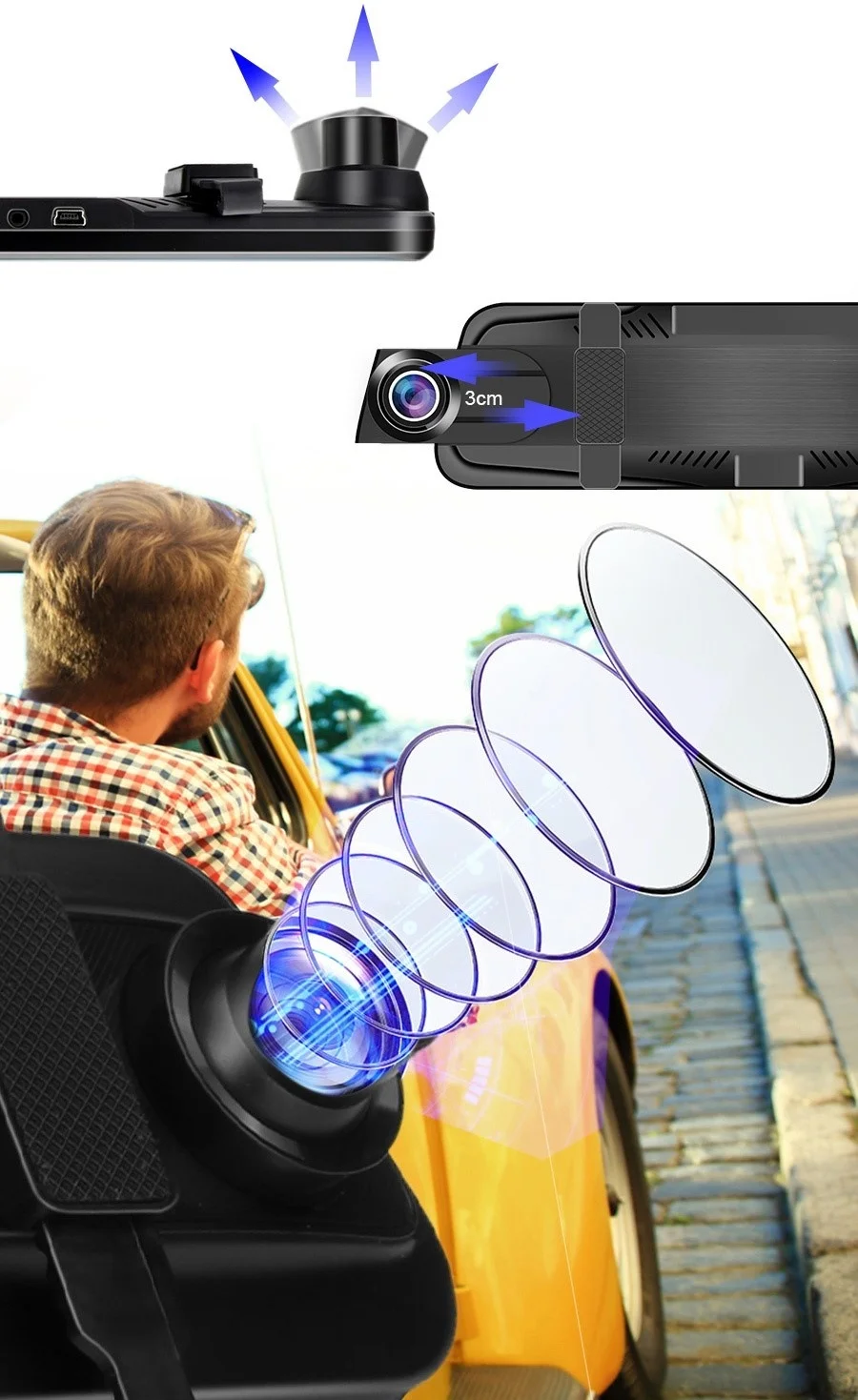 9,66 дюймовый сенсорный экран, более удобный в эксплуатации, вы можете очень быстро управлять камерой автомобиля, так что вы безопаснее в вождении.