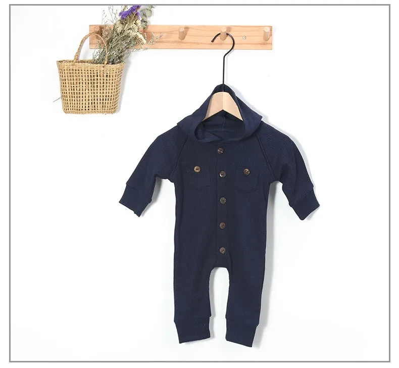 Однобортный комбинезон с капюшоном и круглым вырезом; Детская верхняя одежда для повседневной носки