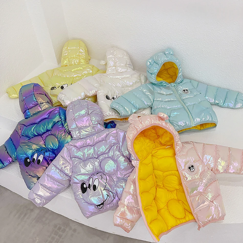 Белая детская куртка на утином пуху легкая пуховая куртка для мальчиков и девочек Яркое пальто с Минни теплый зимний костюм для детей