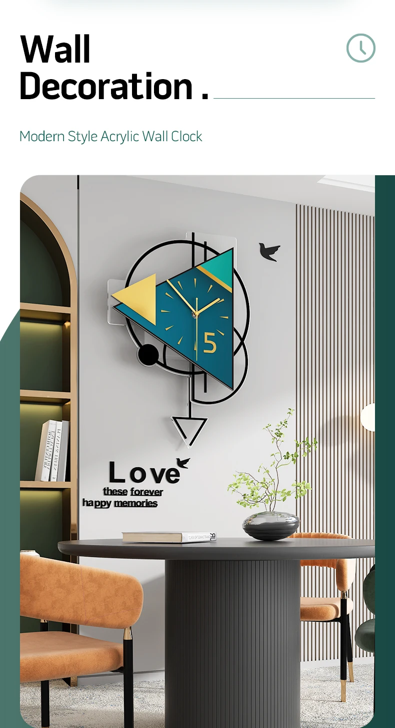 Item Name:MEISD Nordic Clock Pendulum Geometry Large Watch Home Quartz Silent Wall Art Clocks Modern Acrylic Horloge Home Decor Stickers