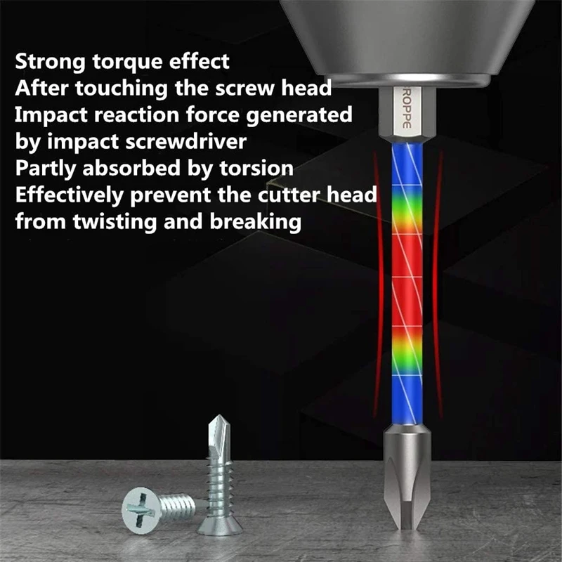 Тонкий, но очень прочный, в 3 раза больше крутящего момента обычных бит; Сильный эффект крутящего момента, эффективно предотвращает скручивание и поломку режущей головки.