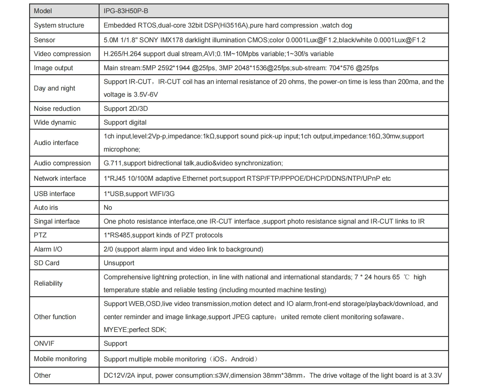 * 6 ~ 22 мм моторизованный зум-объектив, с IRC фильтром. Управление зумом и фокусом по (CMS или IE explorer).