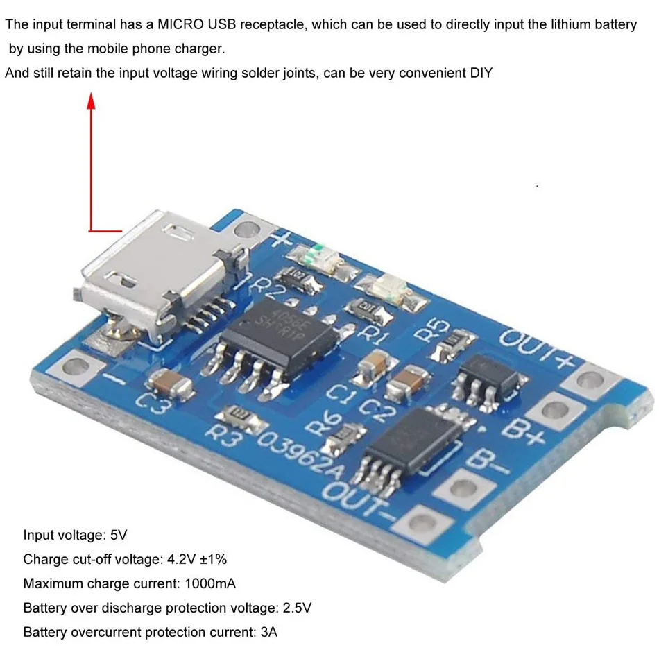 Примечание: При первом подключении к аккумулятору напряжение может не совпадать с выходом + и выходом-, затем получите доступ к зарядке напряжения 5 В, ваша энергия может активировать цепь защиты, И батарея от B + B-, затем нарисуйте линию на коротком открытом также нужно перезаряжать для активации цепи защиты. Обратите внимание, что зарядное устройство должно быть в состоянии выпустить 1A или более, чтобы сделать при использовании мобильный телефон зарядное устройство вход, или не может заряжать