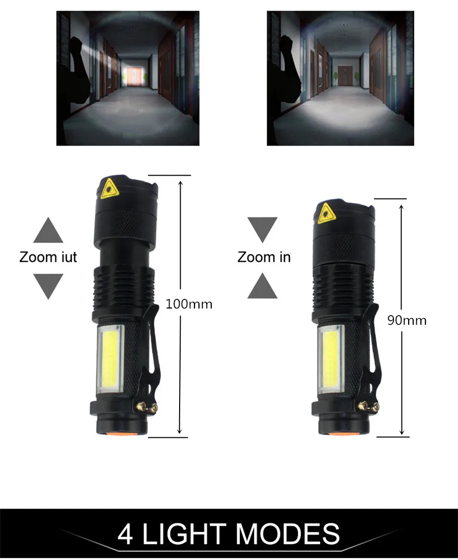 2.Mode: 4-Mode (high - low - sos - COB Light)