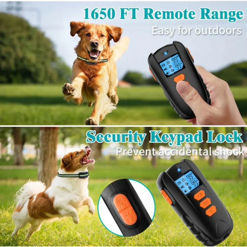 3. Водонепроницаемый ошейник для собак и ЖК-дисплей с подсветкой экрана: тренировочный ошейник является водонепроницаемым IPX67, который дает вашему питомцу больше свободы во время активного отдыха. И Удаленный передатчик имеет ЖК-дисплей с подсветкой, которая поддерживает вас, чтобы тренировать вашу собаку все время.