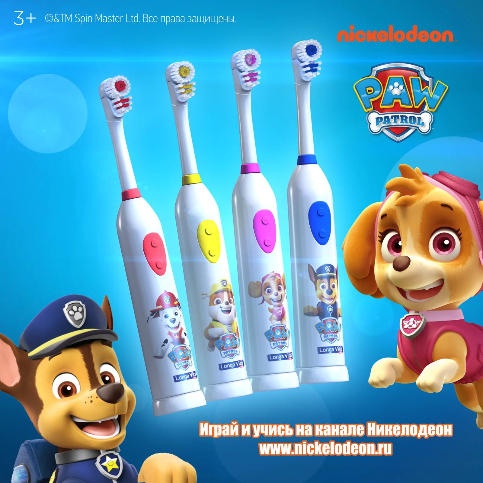 Ротационная зубная щётка для детей с популярными героями PAW Patrol. Подарок - сменная насадка в комплекте. Мягкие вибрирующие щетинки очищают зубы и удаляют налёт. Маленькая круглая головка обеспечивает безопасный уход. Удобные кнопки включения/выключения. Заменяемые батарейки.