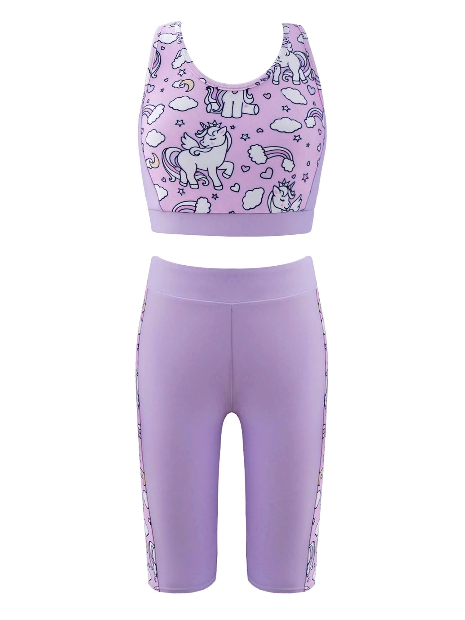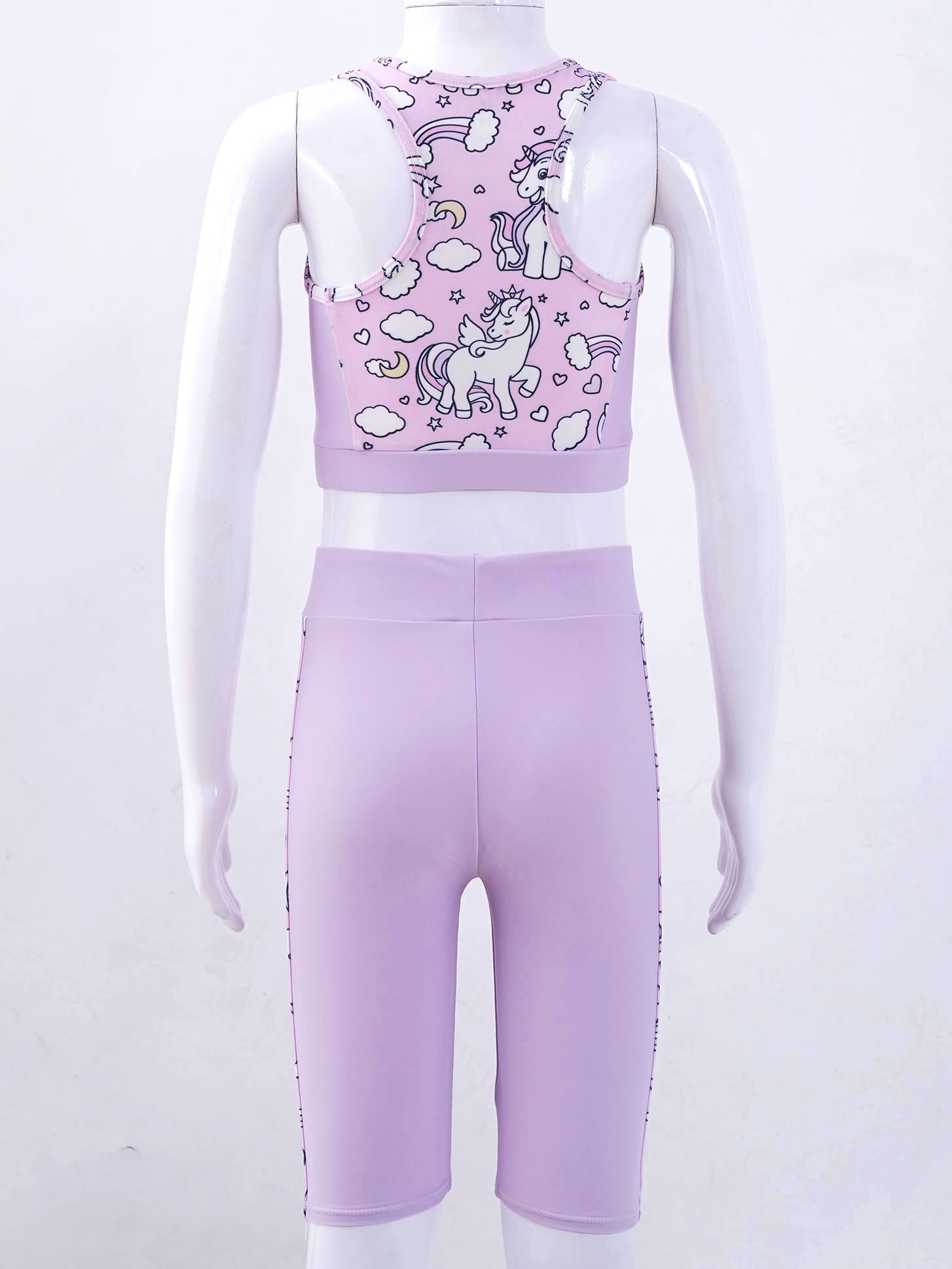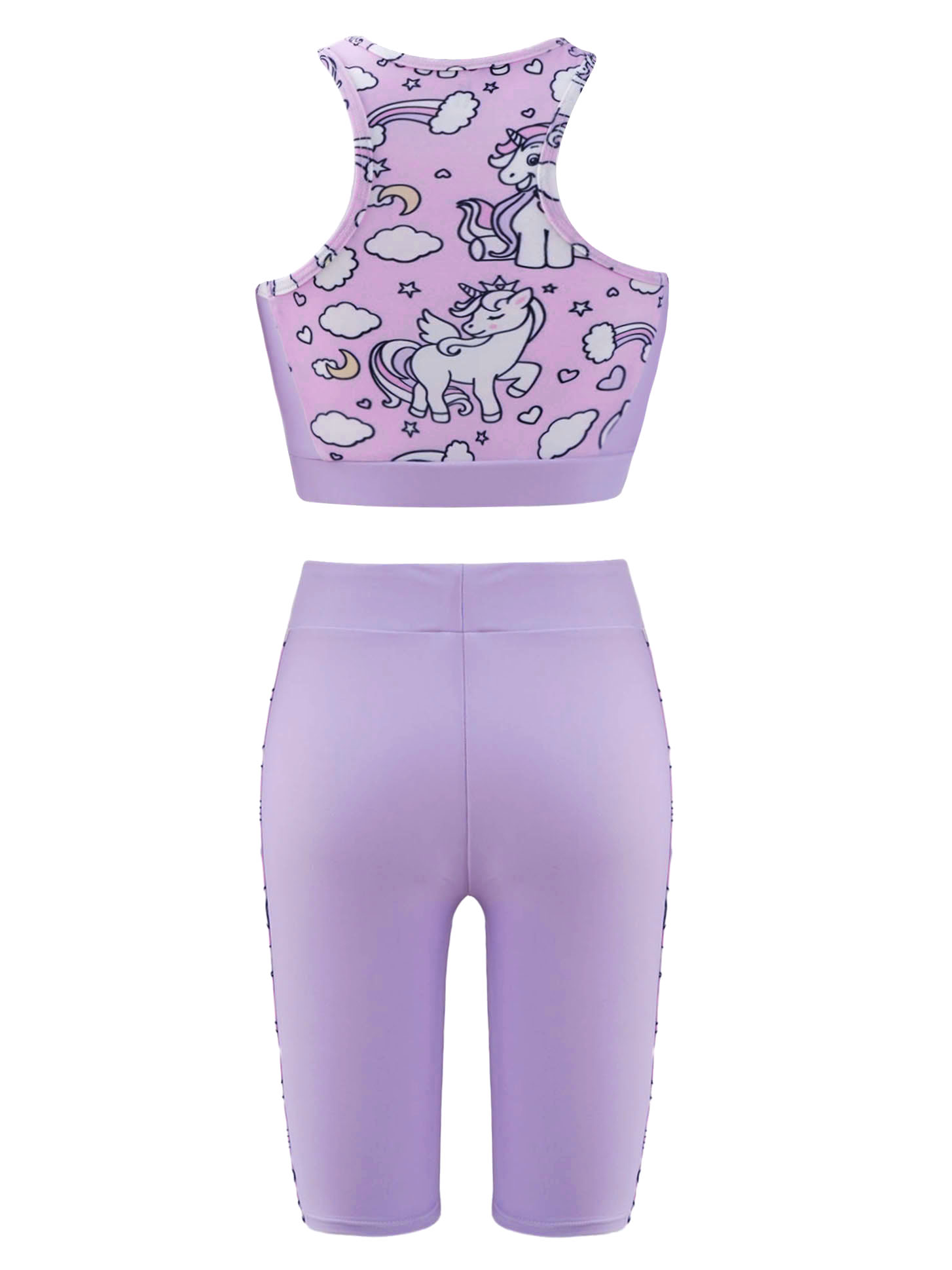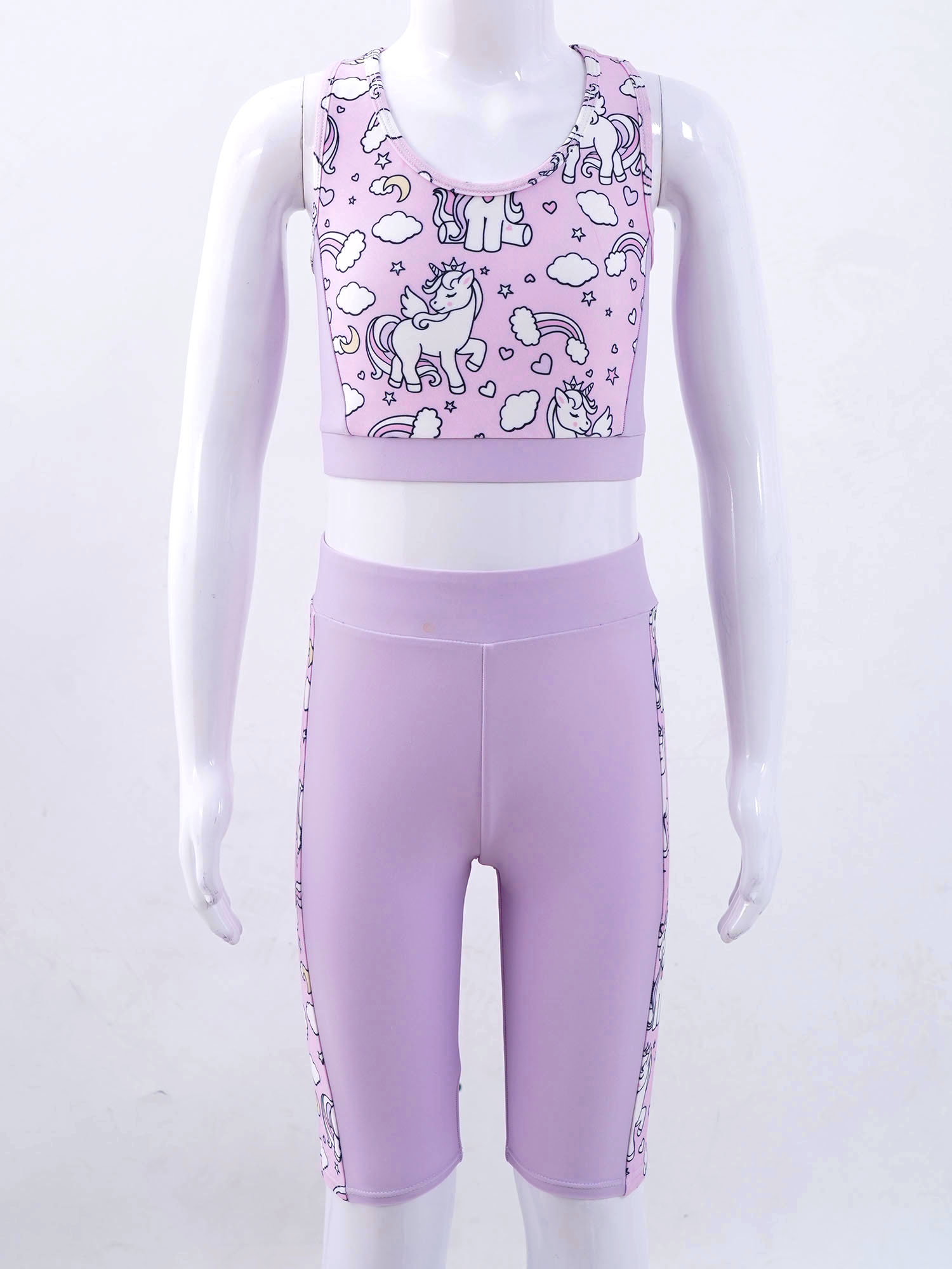Спортивный жилет со спинкой-борцовкой; Пара спортивных шорт; Принт с лошадкой; Сделает девочку милой и живой.
