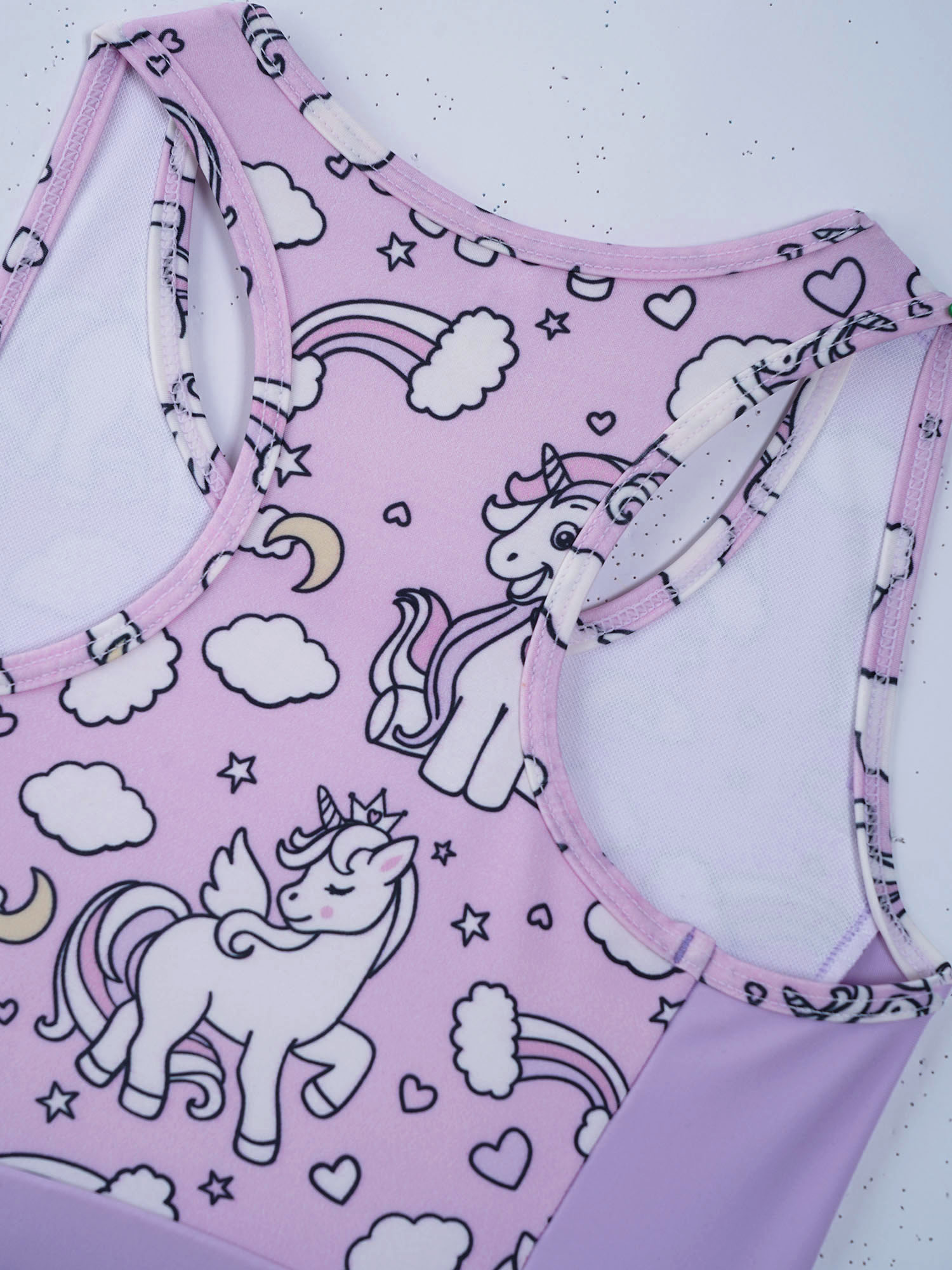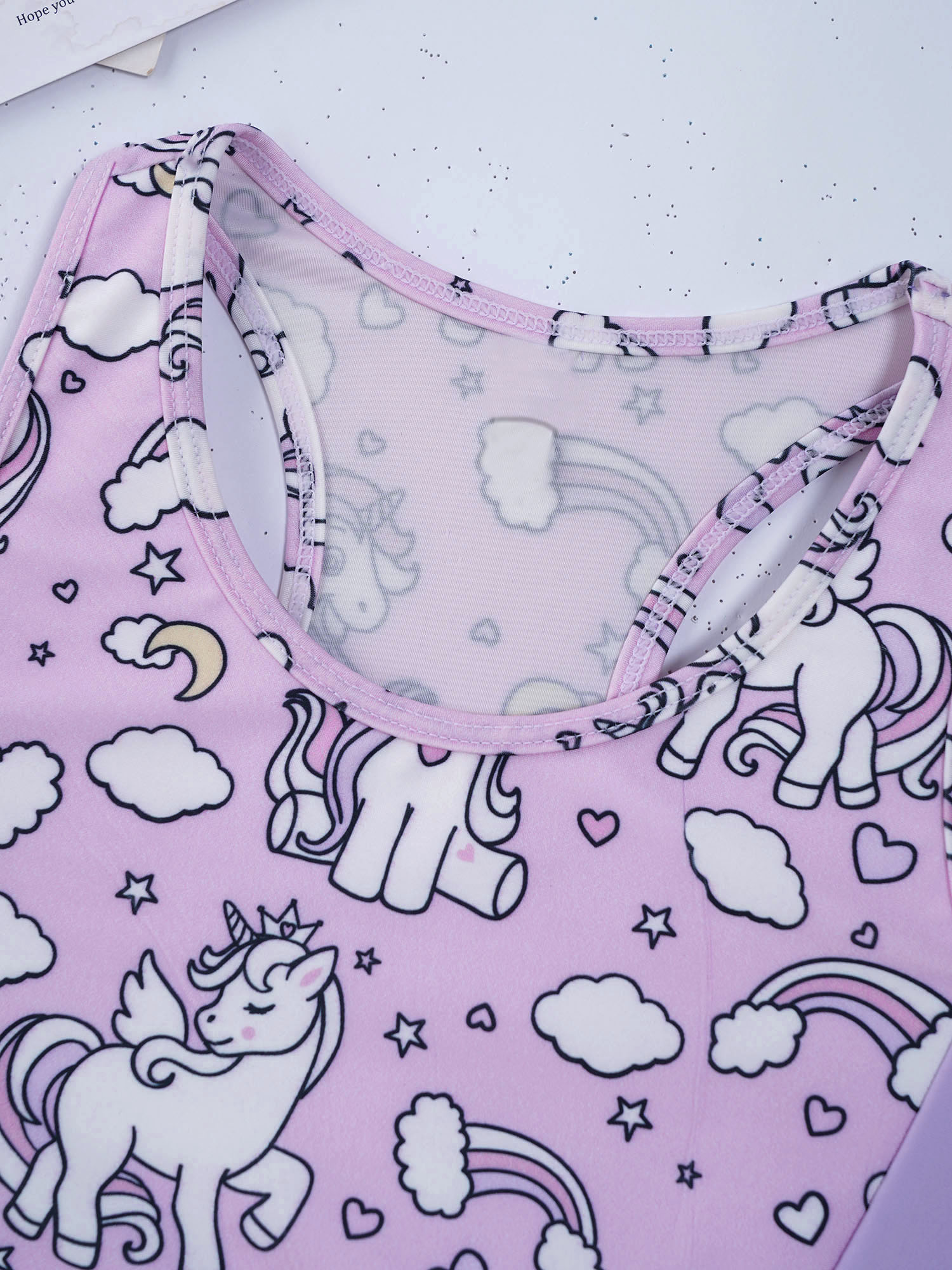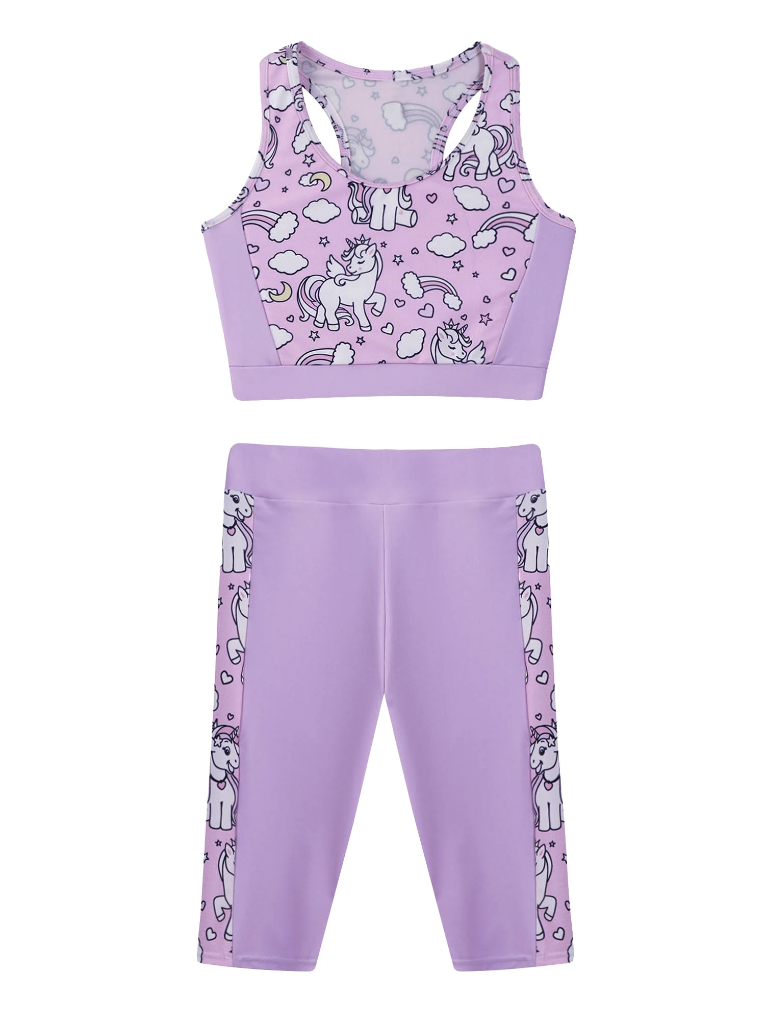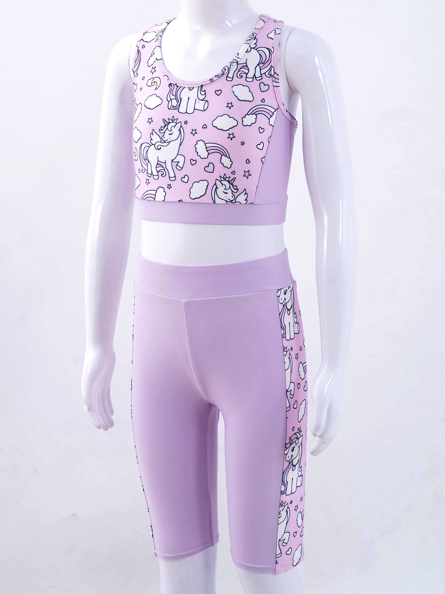 Спортивный жилет со спинкой-борцовкой; Пара спортивных шорт; Принт с лошадкой; Сделает девочку милой и живой.