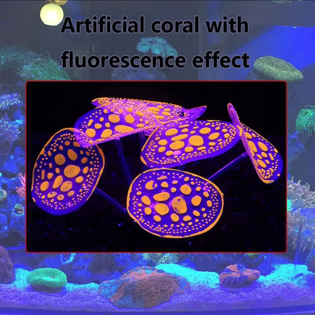 Флуоресцентный эффект этого продукта требует флуоресценции при освещении флуоресцентной лампы (светодиодный светильник для аквариума). Флуоресцентный эффект обычного освещения не очевиден.