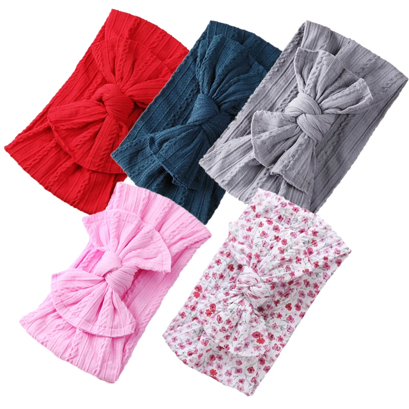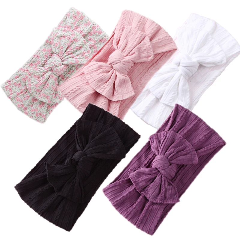 5 шт./лот, вязаная повязка на голову с бантом для малышей, нейлоновые повязки на голову, эластичные повязки на голову для детей, для новорожденных, тюрбан, для девочек, для малышей, винтажная повязка на голову