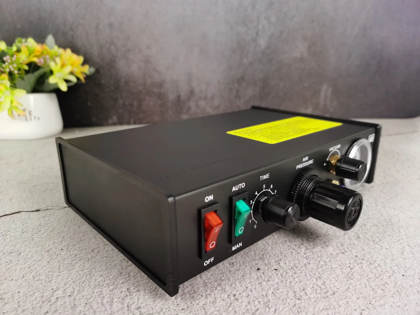 Полуавтоматическая клеевая машина с высоким давлением воздуха устанавливается в то время, с помощью педального переключателя управления жидкостью, запущен. Гибкая регулировка ручного, полуавтоматического состояния, с высокоточным цифровым регулятором времени, точное управление каждый раз время титрования, точное до миллисекунд, право контролировать поток жидкого материала, никогда не отходы жидкого материала. Пока регулируйте хорошее давление воздуха, время и выбор подходящего наконечника иглы, и легко меняйте каждую заметку капли количества и заметки времени. Может решить многие проблемы с помощью резинки, использование просто, Операция Быстрая и простая в использовании, оснащена вакуумным всасыванием обратно в функцию, может контролировать различную вязкость, предотвращает появление луди, высокая эффективность, резиновое соглашение. Не легко усталость, без отходов, широкий спектр использования, продукты, в комплекте могут быть основаны на потребности пользователя, с различными размерами типа игольчатой трубки, Наконечник иглы является лучшим партнером пользователей. Характеристики: Источник питания: 220 В переменного тока плюс или минус 10%/частота 50 Гц