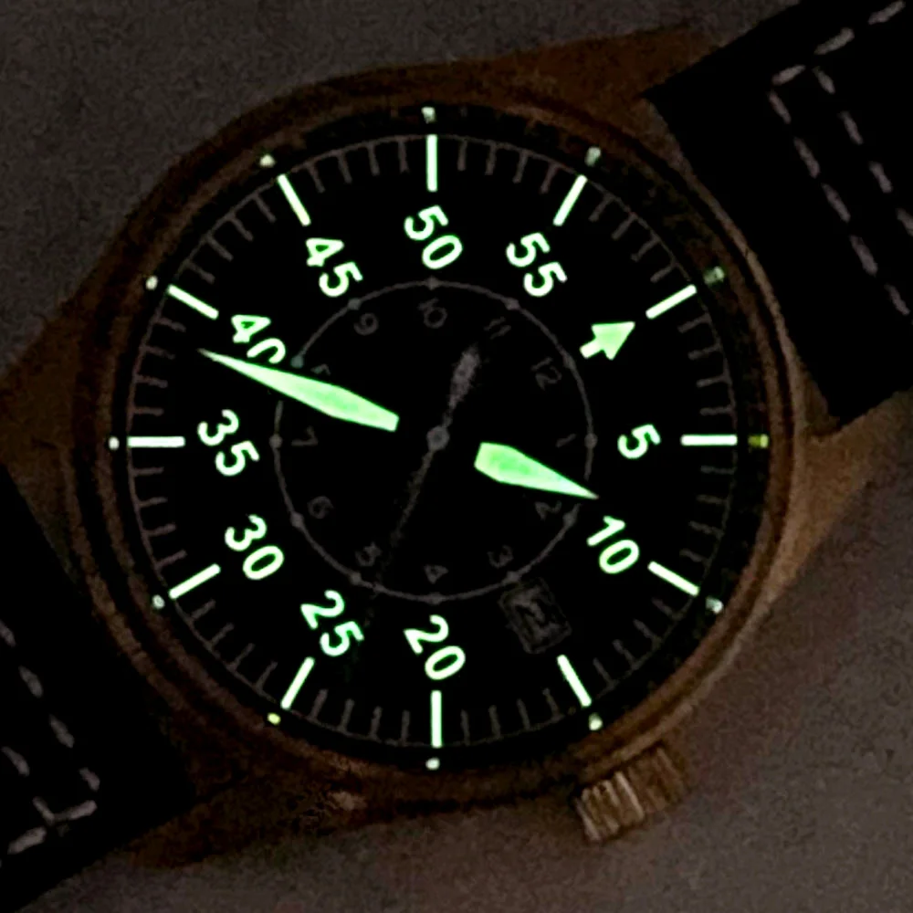 -Циферблат: черный, зеленый светящиеся стрелки и циферблат