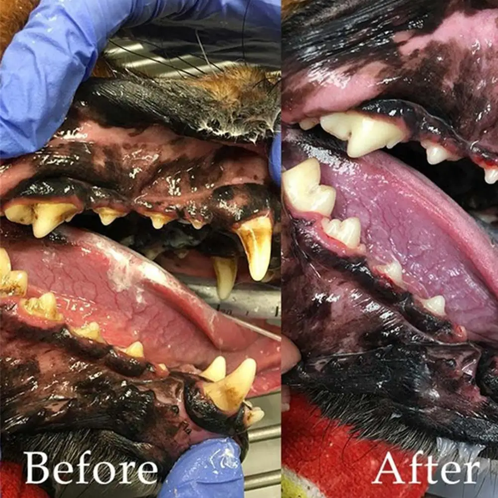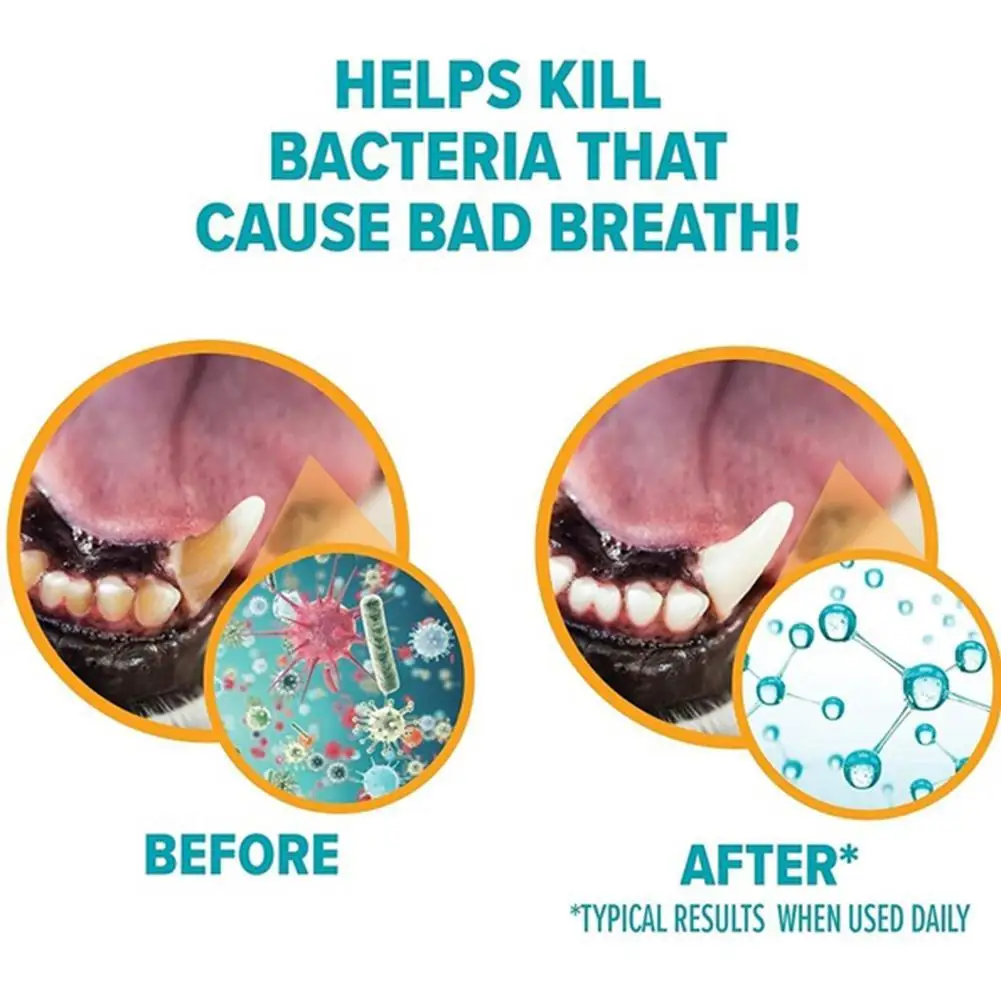 На самом деле работает лучше, чем кости для дыхания собаки, освежители лакомства, освежители воздуха для собак, зубные жевания, мойка рта для собак или другие продукты для чистки зубов и ухода за зубами. Натуральные ингредиенты обладают антисептическими свойствами и дают результаты на ферментативном уровне, устраняя корневую причину плохого дыхания, налета, брезента, бактерий и пародонтальных заболеваний, прежде чем наступить слишком поздно. Это самый простой способ сделать свежее дыхание для собак и кошек, а также обеспечить защиту :)