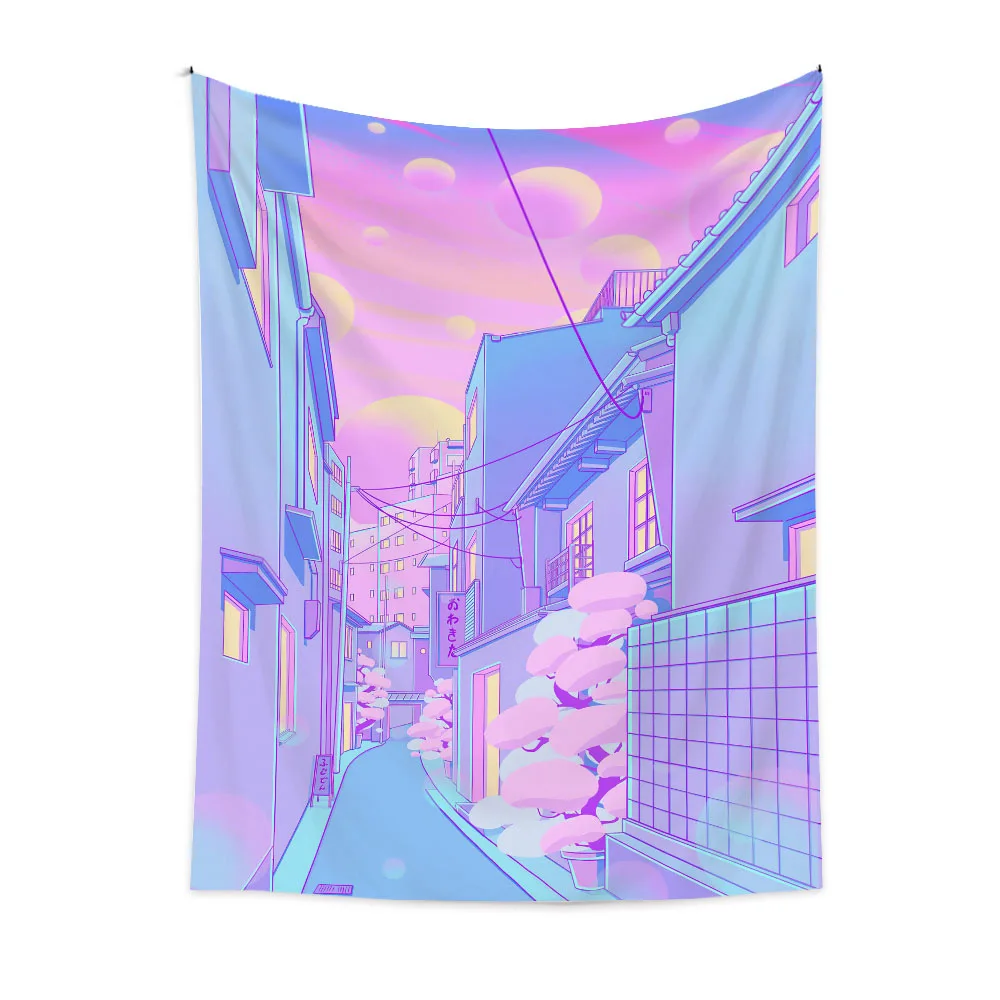 Cilected фиолетовый Psychedelic гобелен настенный Фэнтези город гобелен с пейзажем для комнаты общежития декоративный фон ткань