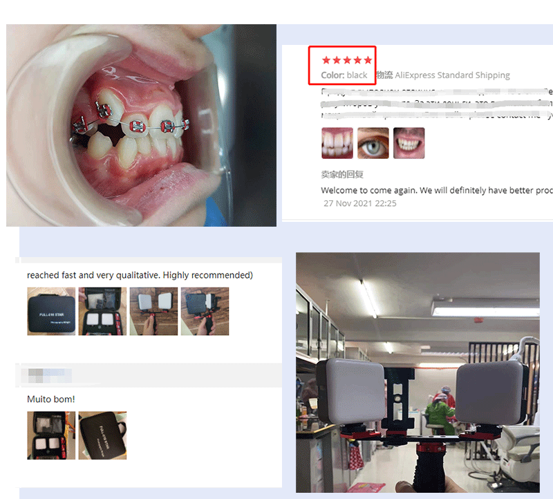 High brightness, accurate color temperature, light and portable; the photography lamp can control the brightness of the light through the brightness knob, which can realize the combination of four lamps, and can flexibly control the brightness of the light according to the needs in the actual shooting.