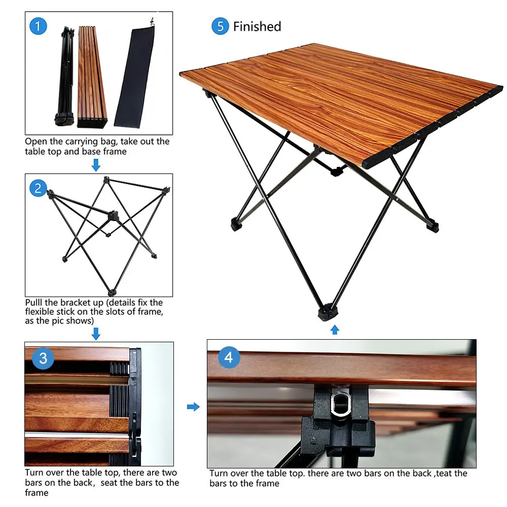 Быстрая сборка:Просто откройте стол и сложите его на место, и вы можете подготовить стол за считанные секунды! Легкая алюминиевая основа позволяет любому легко и быстро прикрепить Рабочий стол к ноге-так просто, вы даже можете собрать его одной рукой!