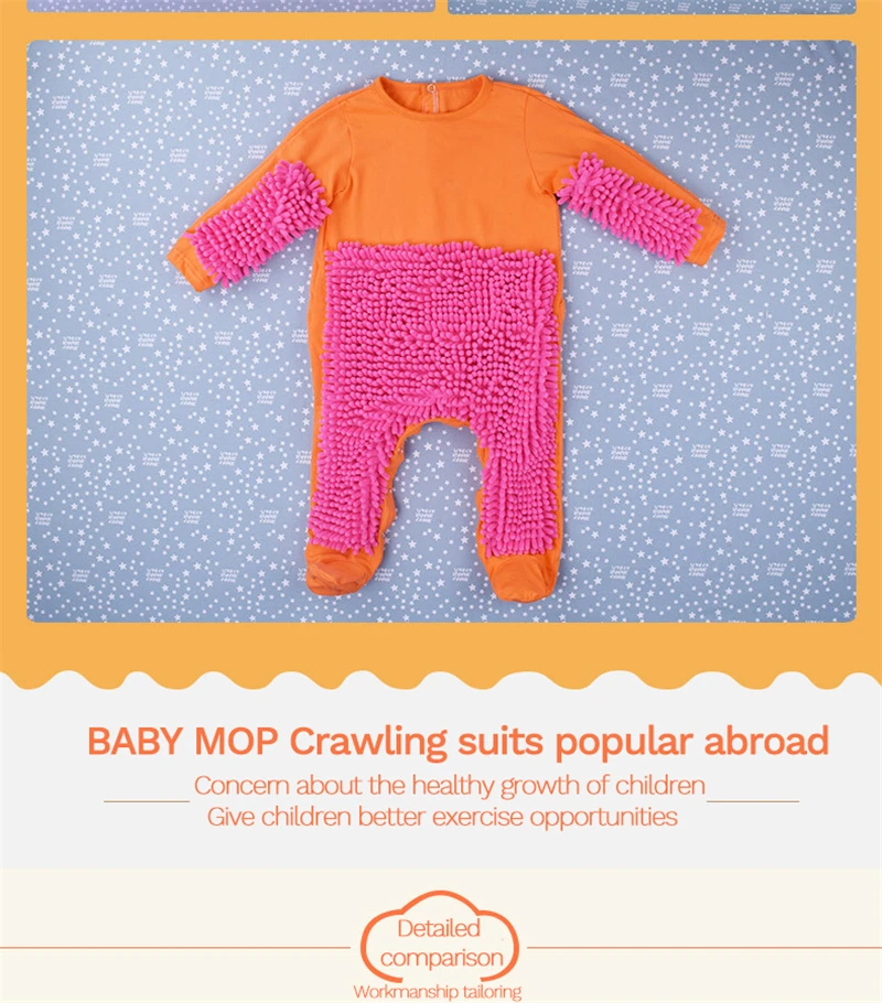 Детская одежда для ползания с длинными рукавами, комбинезон для малышей, хлопковый костюм для чистки младенцев, костюм-Швабра год, унисекс