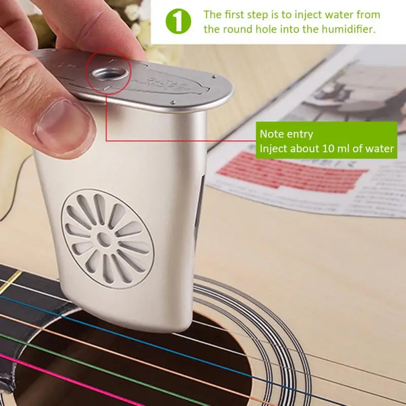 Простой в использовании, вам нужно только заполнить один раз в месяц, чтобы получить идеальную влажность гитары и звук гитары.